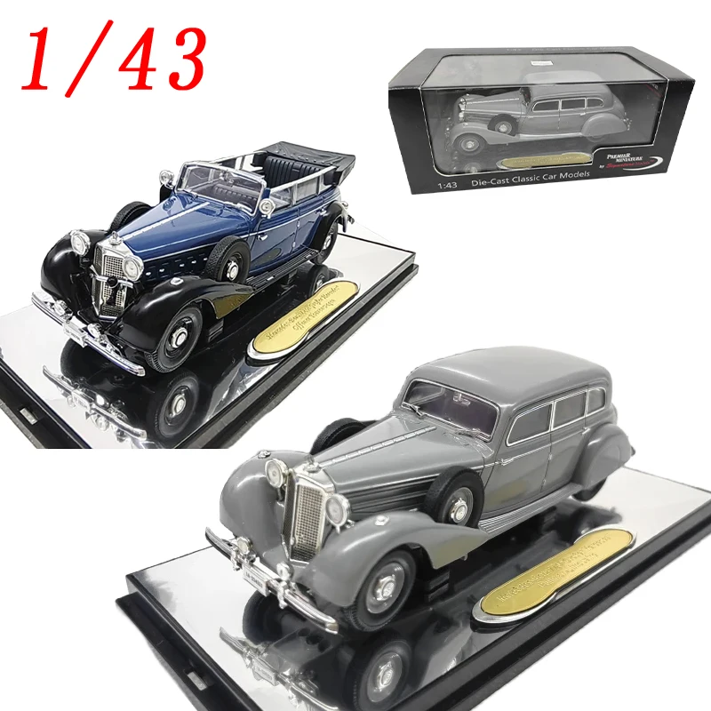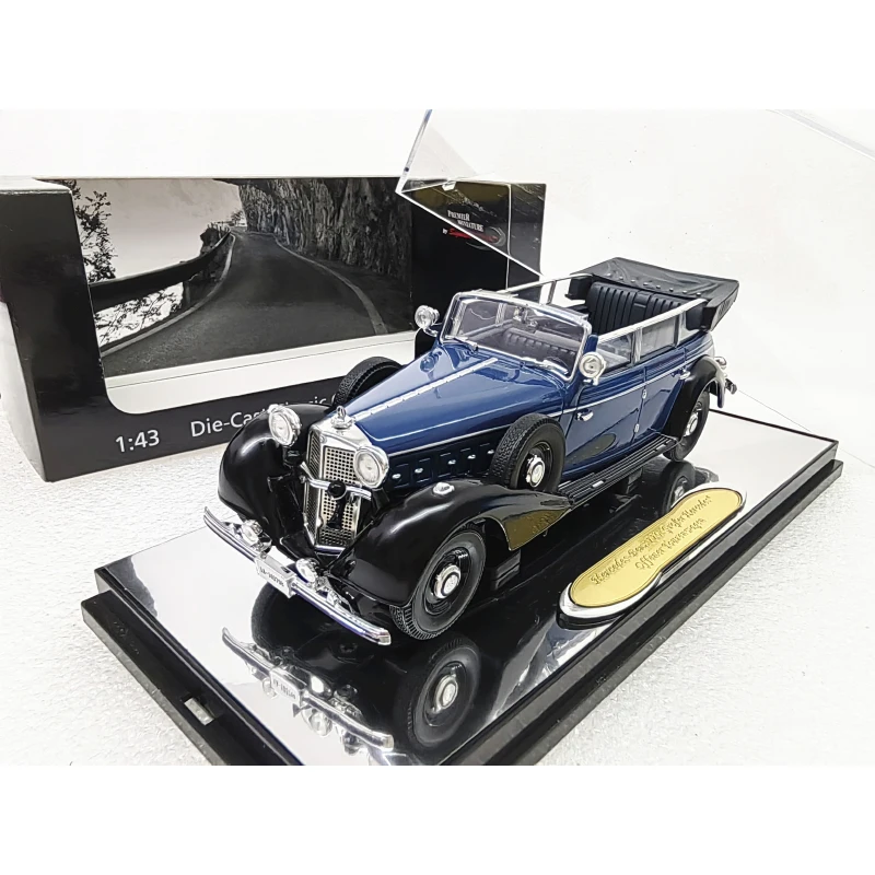 Step into the timeless elegance of vintage automotive craftsmanship with this exquisitely crafted diecast model of the Mercedes 770K. Measuring at 1/43 scale, this collectible showcases a striking deep blue open-top alloy design, accentuated by detailed black accents, a chrome grille, and classic round headlights. The sleek, smooth metal finish highlights the elongated, vintage body, complete with silver side mirrors mounted on the front fenders and intricately designed silver rims with black tires. The transparent windows reveal a meticulously detailed interior, making this a perfect piece to display or gift. Crafted with high-quality metal, plastic, and rubber, this model radiates nostalgic charm and sophisticated craftsmanship—ideal for collectors who appreciate authenticity and fine detail.