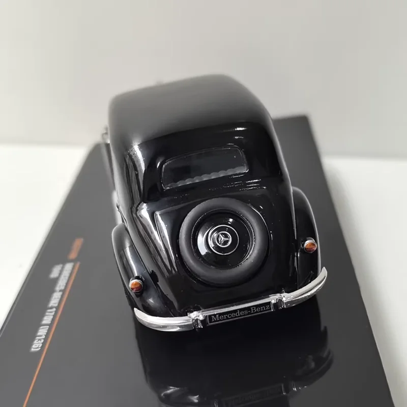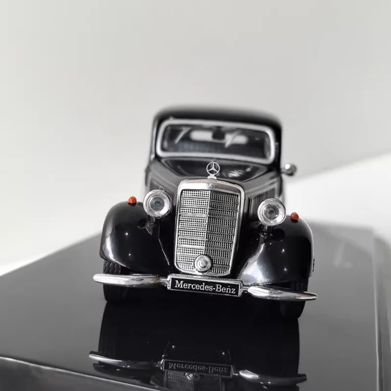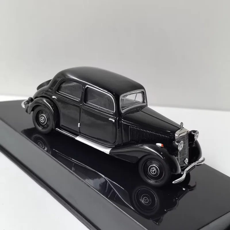 This meticulously crafted 1:43 scale die-cast model of the 1949 BENZ 170V W136 vintage car features an alloy, plastic, and rubber construction, capturing the iconic rounded body, prominent fenders, and elegant contours of the original. Finished in a glossy black with detailed silver accents on the grille, headlights, and trim, it exudes timeless automotive charm. Designed for static display, this collectible model is suitable for enthusiasts aged 14 and above, making a perfect gift or decorative piece. Minor paint imperfections may be present, reflecting its realistic craftsmanship. Ideal for collectors seeking a refined and authentic miniature of this classic vintage car.