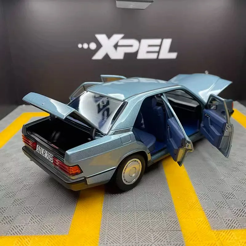 Experience the timeless charm of the vintage Mercedes-Benz 190E from 1984 with this meticulously crafted 1:18 scale diecast alloy model. The sleek metallic green finish catches the light beautifully, highlighting its authentic and nostalgic design elements. Its angular, boxy shape is a perfect representation of the 1980s style, complemented by contrasting black window trims, door handles, and side moldings that add depth and realism. The model’s detailed interior includes textured seats and a dashboard, while the openable front hood reveals a miniature engine. Functional steering linked to the front wheels and fully rotatable four wheels make this collectible a standout. An ideal display piece for car enthusiasts and collectors alike, it perfectly combines vintage aesthetics with superior craftsmanship.
