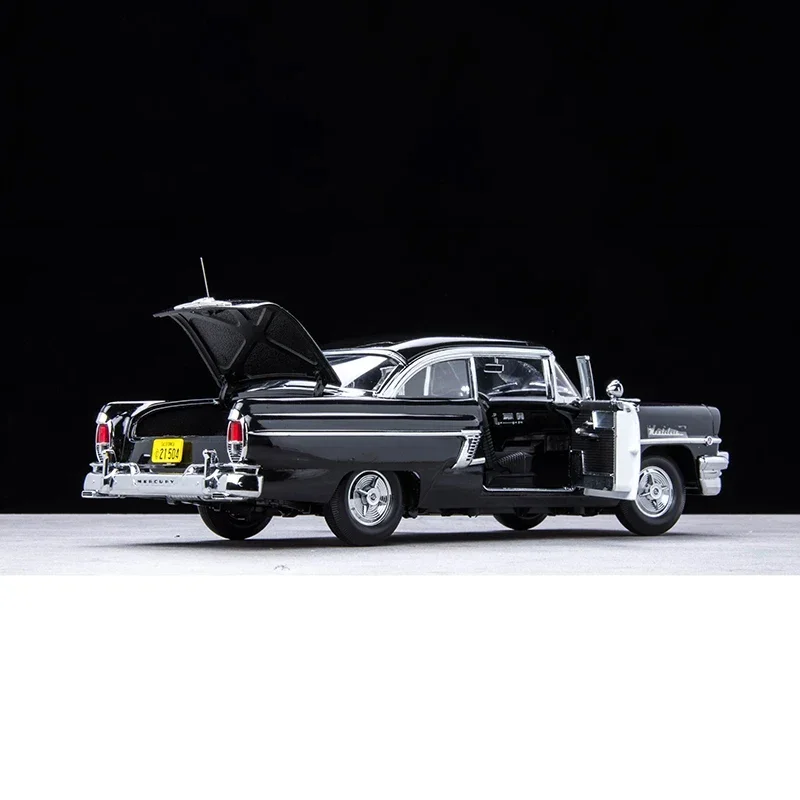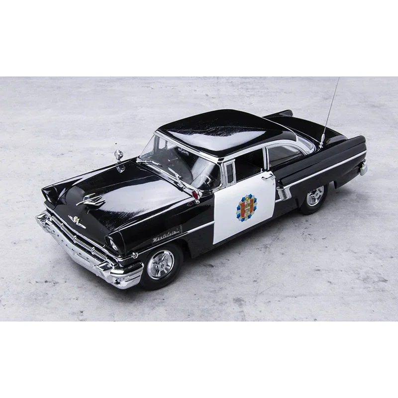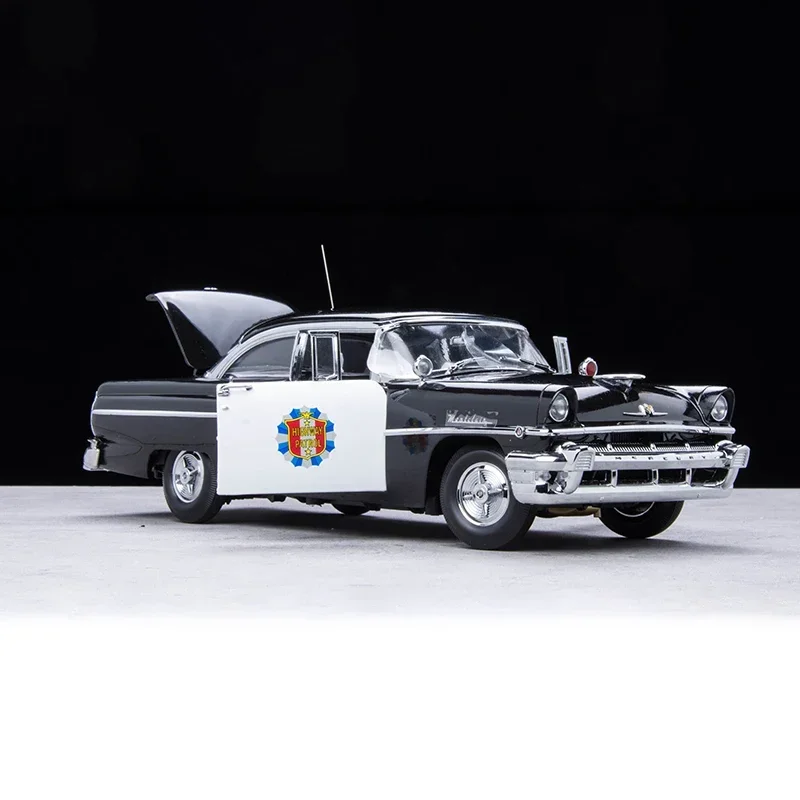 Create a captivating scene with this detailed 1/18 scale diecast alloy model of a Mercury Montclair American police car. Measuring approximately 27 cm in length, 10 cm in width, and 9 cm in height, this vintage-inspired collector’s piece features a glossy black body accented by a striking white police door panel with official emblem details. Chrome trim outlines the windows, doors, headlights, and bumper, enhancing its classic aesthetic. Equipped with functional opening doors, rubber wheels with intricate rims, and realistic interior detailing, this non-powered display model is perfect for enthusiasts seeking a nostalgic and meticulously crafted vintage police vehicle for collection or display.