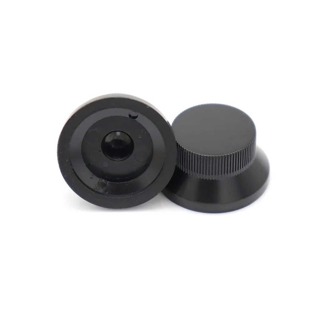 - Designed with a conical shape tapering toward the base, these potentiometer caps fit most bass guitar models, providing a sleek, minimalistic look that complements any style.