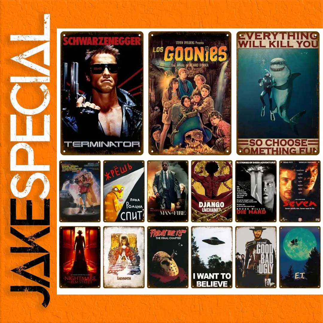 The vintage metal sign collection features iconic movie posters with a retro aesthetic, perfect for enhancing your living room or cinema decor. Each sign, measuring 20 x 30 cm (7.8 x 11.8″), is crafted from durable metal and showcases a variety of beloved films. The designs include vibrant colors and dramatic imagery, captivating movie enthusiasts and collectors alike. The signs also possess a customizable option and distressed edges, emphasizing their nostalgic appeal. Embellish your wall with a piece that brings a touch of classic cinema into your home, evoking memories and conversation among guests.