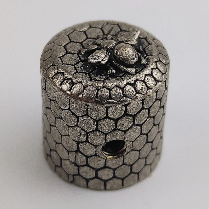 Experience the perfect blend of vintage charm and sturdy craftsmanship with this set of metal guitar control knobs. Designed to elevate your instrument’s appearance, each knob features a textured honeycomb pattern complemented by a detailed bee decoration on top, adding a unique personality to your setup. Made from high-quality metal with an aged or antique finish, these knobs not only look stunning but also provide durable, long-lasting performance. Suitable for various guitars and basses with split shaft potentiometers of 6 mm or less, they are easy to install and replace. Whether you're customizing your electric guitar or bass, these knobs bring both style and functionality to your instrument, making your playing experience even more enjoyable.