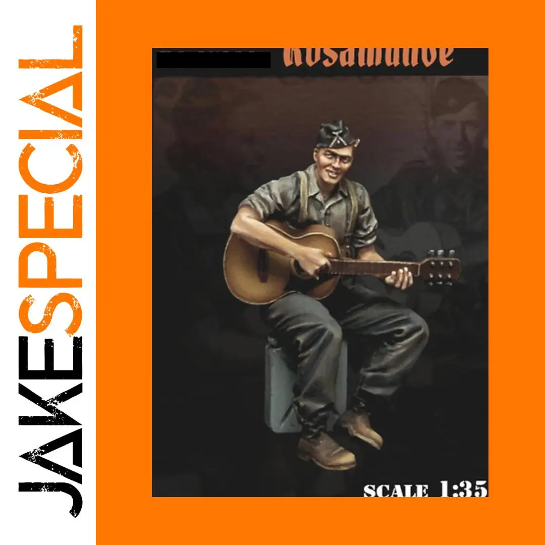 Bring your collection to life with this highly detailed 1/35 scale resin figure kit featuring a vintage-inspired soldier playing acoustic guitar. The unassembled and unpainted set includes 12 environmentally friendly resin parts crafted for precision, realism, and customization. Designed for hobbyists and collectors aged 12 and above, this kit offers flexible parts that can be gently bent in hot water if warped. Ideal for painting and assembly, it captures a relaxed, lively pose with finely rendered textures, including a tilted military cap, casual uniform, and expressive facial features. Perfect for creating a unique diorama or display, this model embodies craftsmanship and vintage military charm.