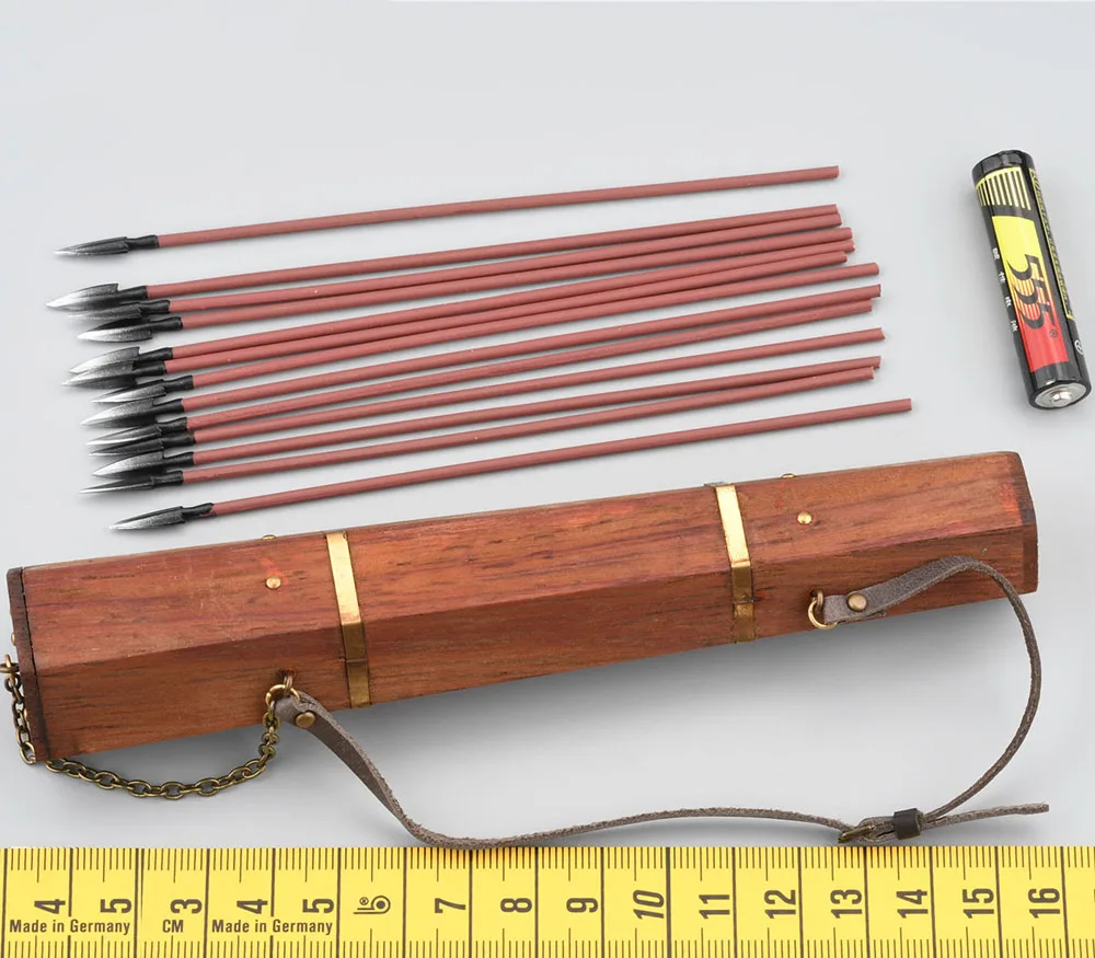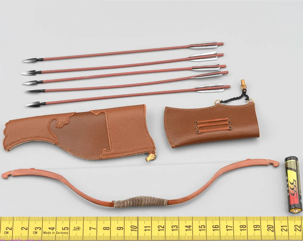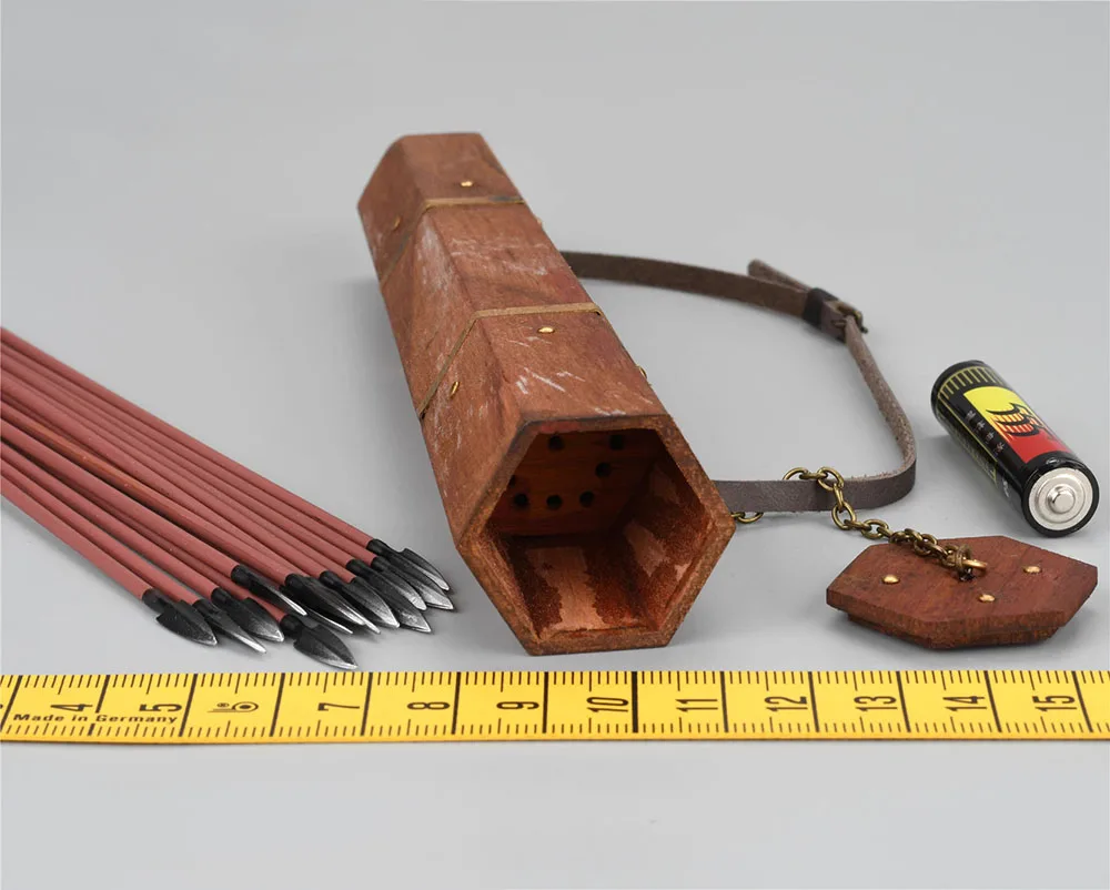 - Accessory set includes a water bottle, a barrel of arrows, and a miniature horsewhip, all crafted with fine PVC material and detailed features to enhance historical accuracy and visual appeal.