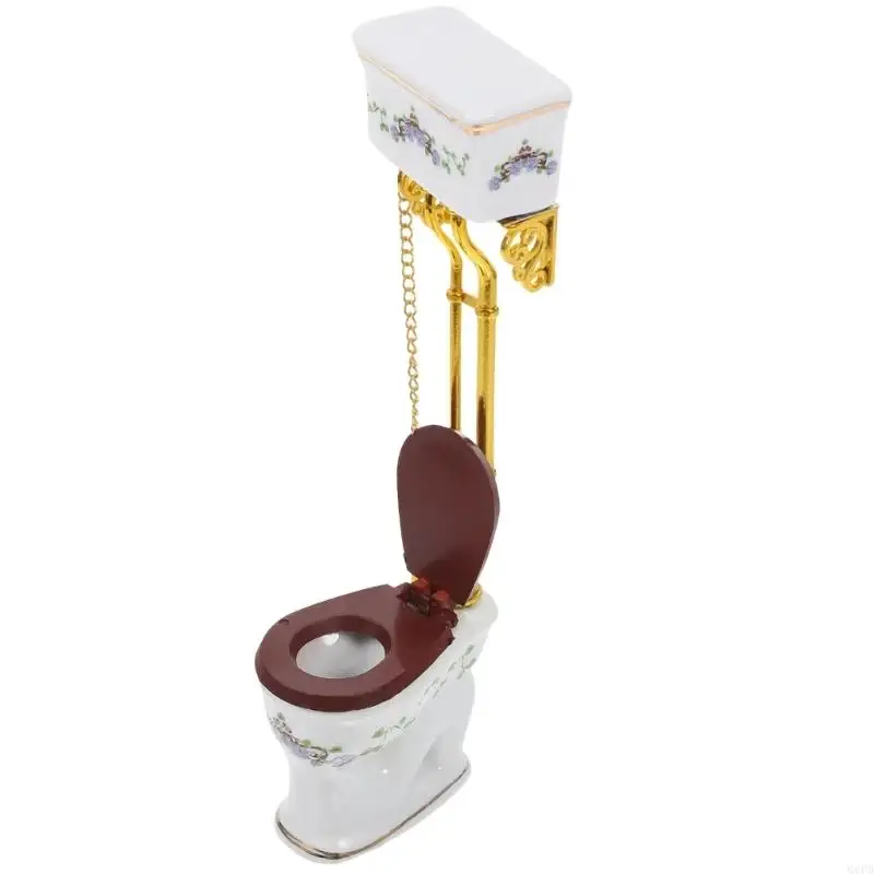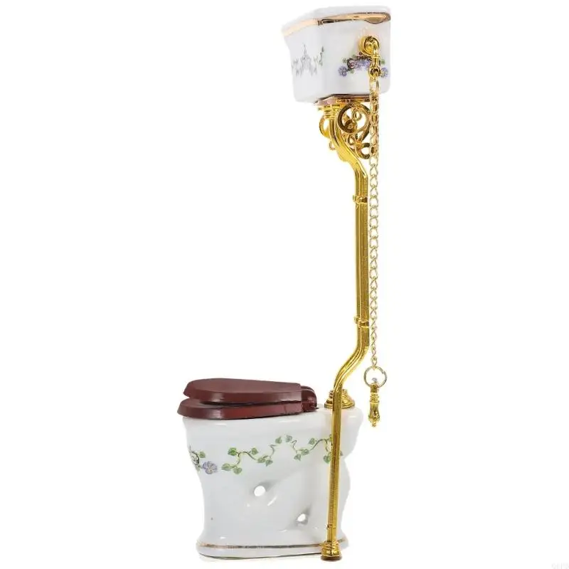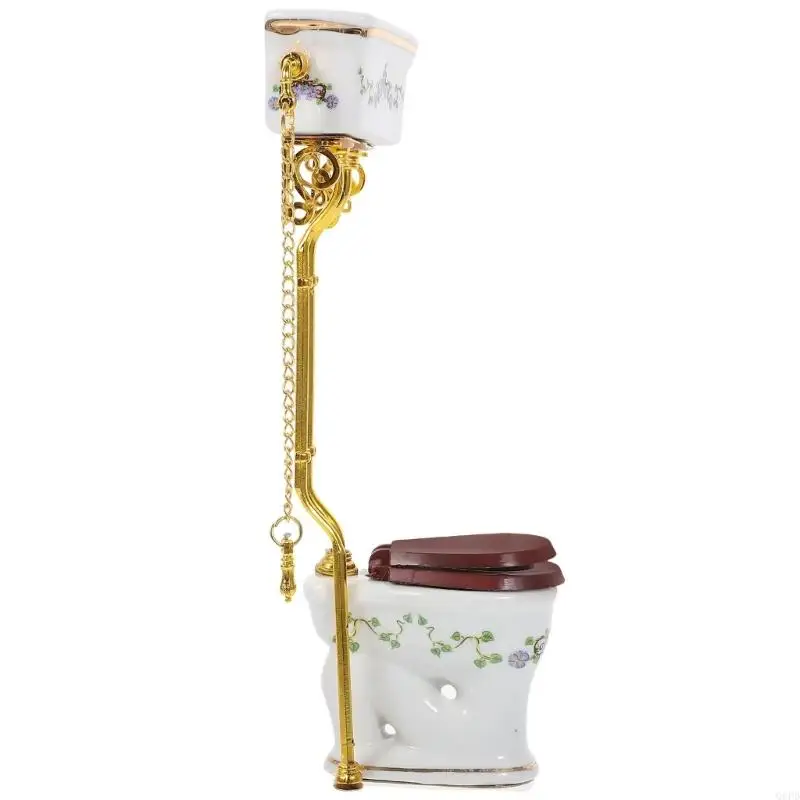 - Includes a small chain representing a flush mechanism, in gold color, a fine detail that adds authenticity and charm, completing the vintage aesthetic of your miniature bathroom setup.