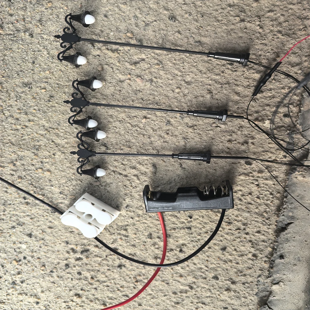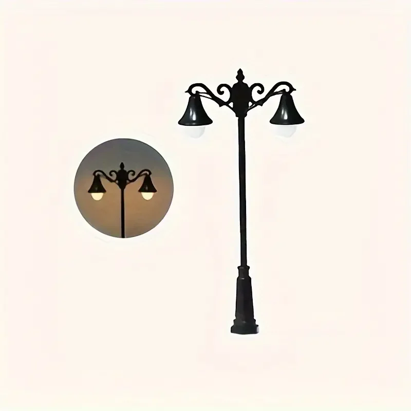 Envision your scene glowing warmly with this vintage lamp set, creating a captivating and authentic atmosphere. Whether for a railway landscape, architectural project, or diorama, these lamps bring a charming, timeless touch. The durable construction ensures longevity, while the easy wiring helps you install effortlessly. Add a sophisticated glow to your model at home or in your display, and watch your scene come alive with inviting light. Elevate your creative projects with these exquisite vintage lamps—your miniature masterpiece deserves the best lighting.