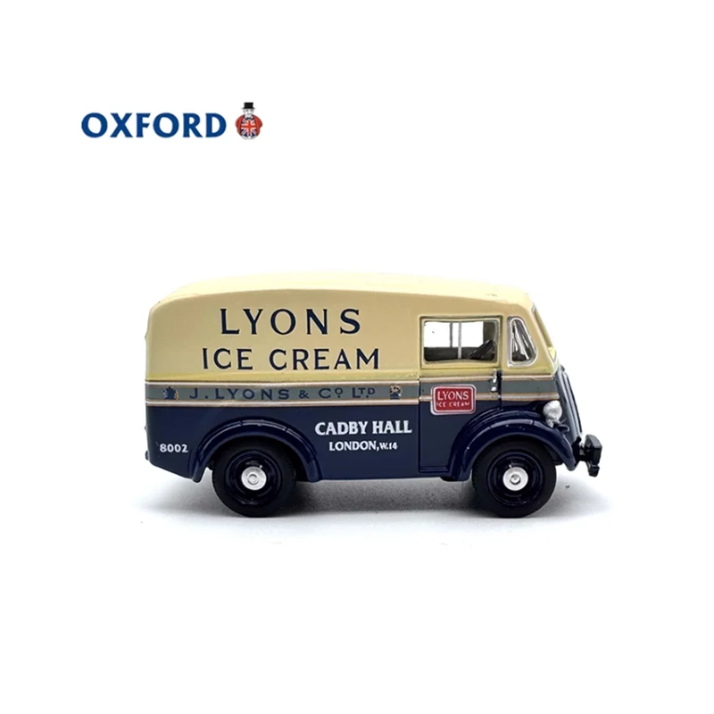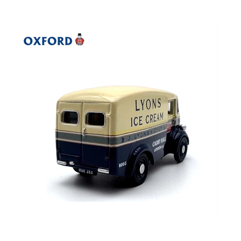 Step into nostalgia with this beautifully crafted diecast alloy model of a vintage Morris J ice cream truck. Measuring approximately 5 cm long, 2 cm wide, and 2.3 cm high, this 1:76 scale collectible captures every charming detail of the classic ice cream van. The model features a sophisticated two-tone color scheme with a soft cream or beige upper section contrasting with the deep navy blue lower half, creating a striking vintage look. Glossy and smooth, it reflects the timeless appeal of retro transportation. Realistic accents like silver-trimmed painted windows, tiny black wheels with silver centers, and a detailed front grille further enhance its authenticity. This collectible is perfect for display and reminiscing about the golden age of ice cream trucks.