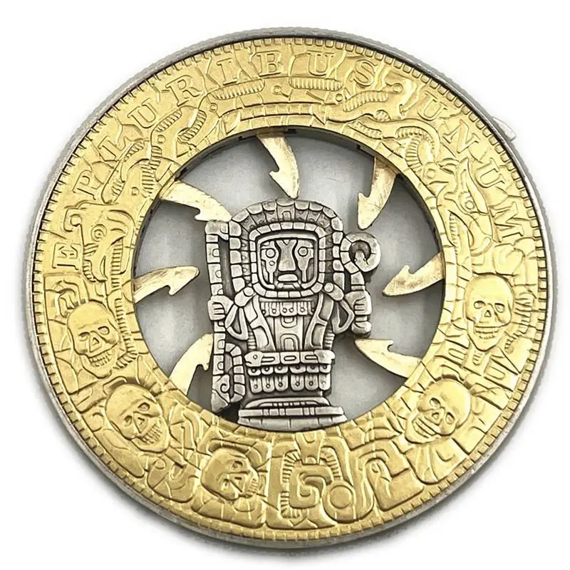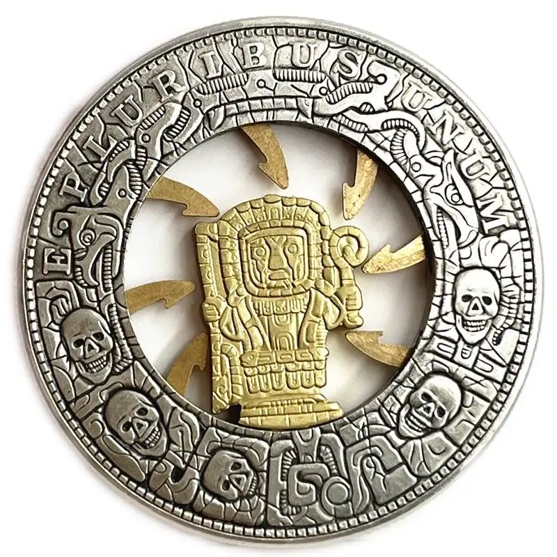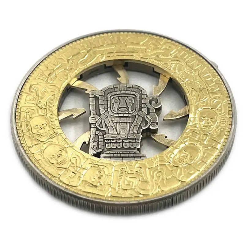 - Central design showcases a detailed eagle emblem on the obverse, with a hidden mechanism on the reverse revealing a secret scene when manipulated.