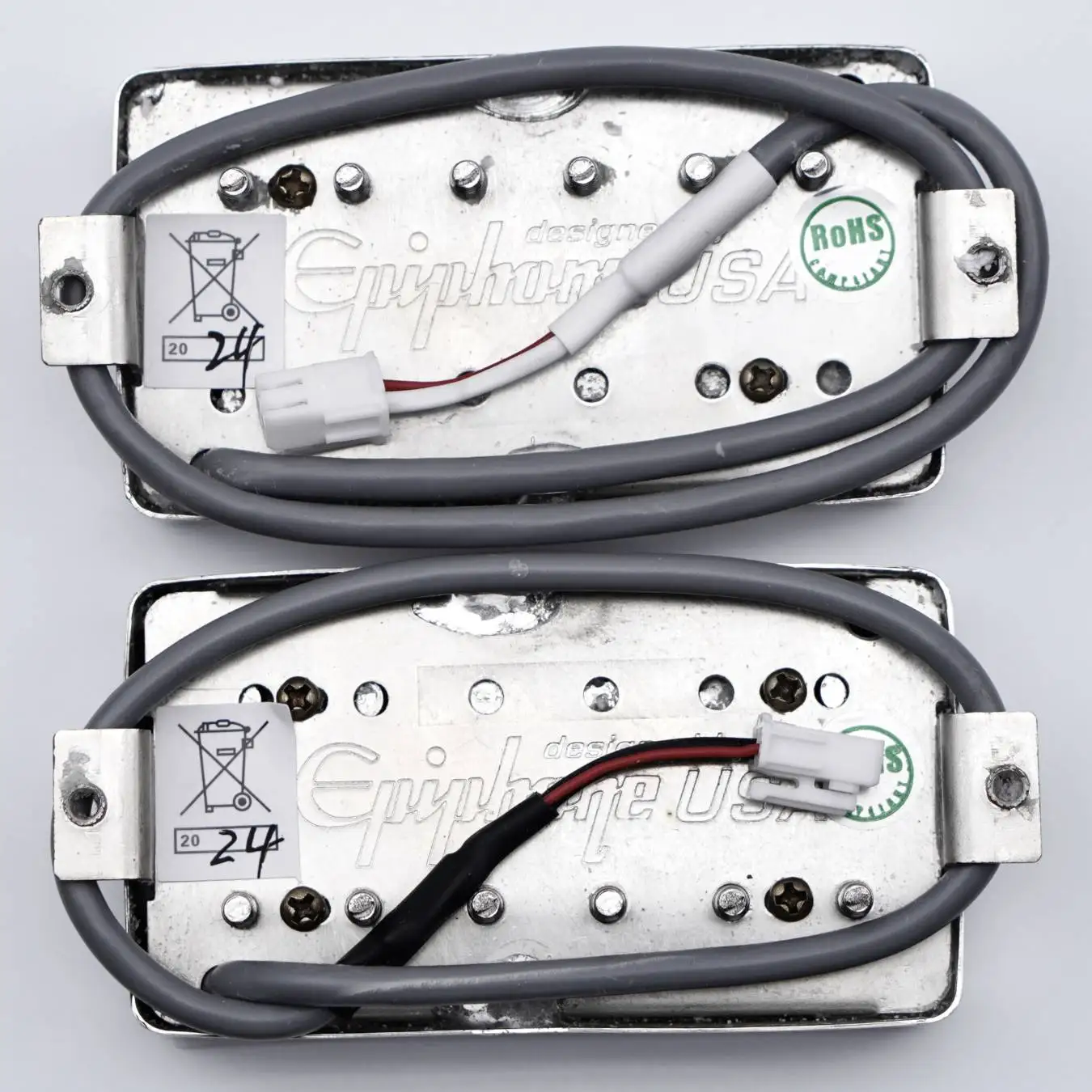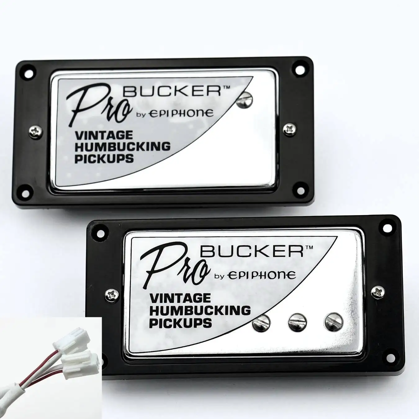 Experience the timeless appeal of this this Classic Nickel ProBucker Humbucker Set, specially crafted for Epiphone LP Standard models. These pickups feature a sleek chrome/nickel finish that adds vintage charm to your guitar, combining high-quality materials with a stylish, minimalist design. Designed to deliver warm, powerful humbucker tones, these pickups are perfect for those seeking authentic vintage sound and aesthetic. With their durable construction and precise craftsmanship, these humbuckers enhance your playing experience, providing rich sustain and clarity. Installing these pickups will instantly elevate your guitar's tonal palette, making it ideal for classic rock, blues, or modern styles. Embrace the vintage vibe and exceptional sound quality of this premium set suited for serious guitar enthusiasts.