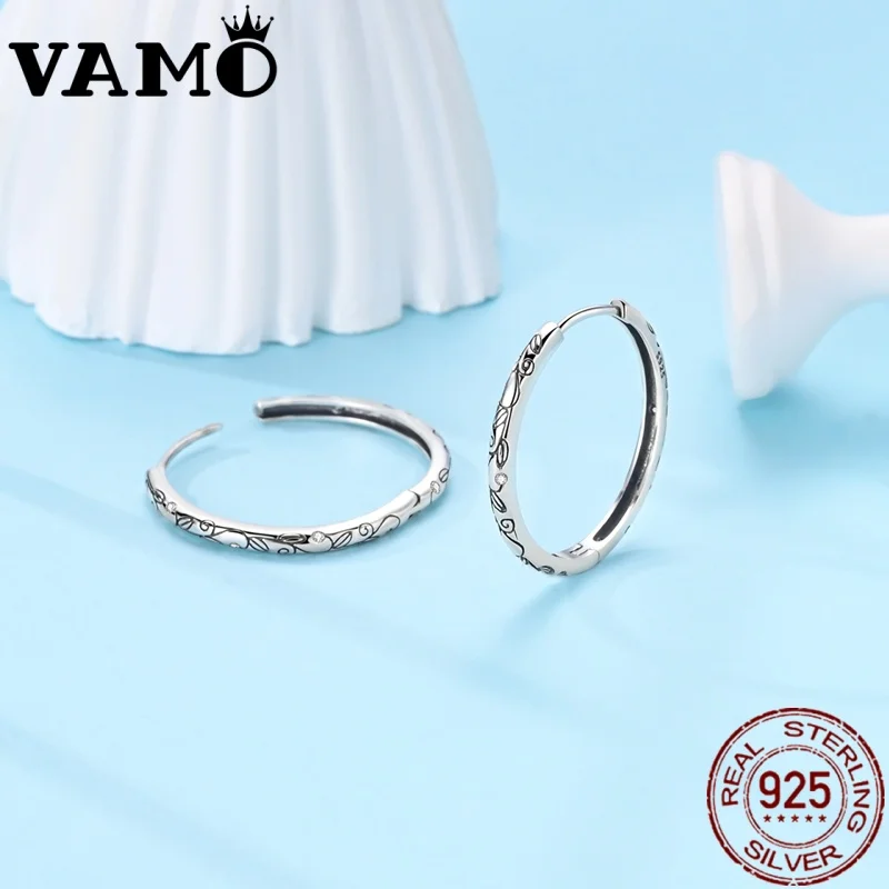 Imagine yourself showcasing these exquisite earrings that blend vintage charm with contemporary flair. Crafted from 925 sterling silver, they feature irregular hoop shapes that evoke a natural, organic feel. The polished surface reflects light beautifully, while intricate vine-like swirling motifs, etched with blackened details, provide textured depth and vintage sophistication. Small, clear zircon stones with a sparkling faceted cut are embedded along the hoops, adding subtle elegance and brilliance. Designed with a secure clasp, these earrings are lightweight and comfortable for everyday wear or special occasions. Their versatile style makes them perfect for enhancing your outfits, whether at a wedding, anniversary, or special event, elevating your personal style effortlessly.