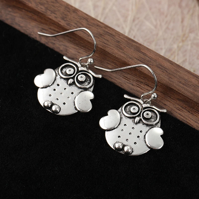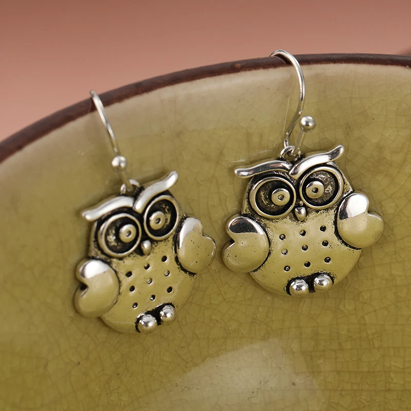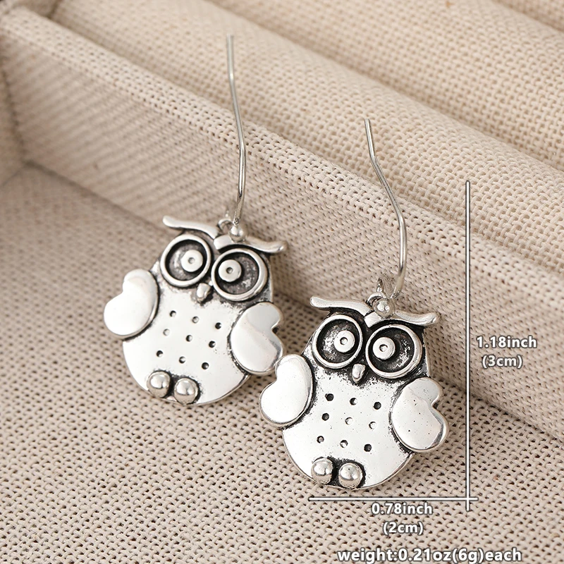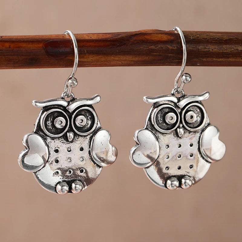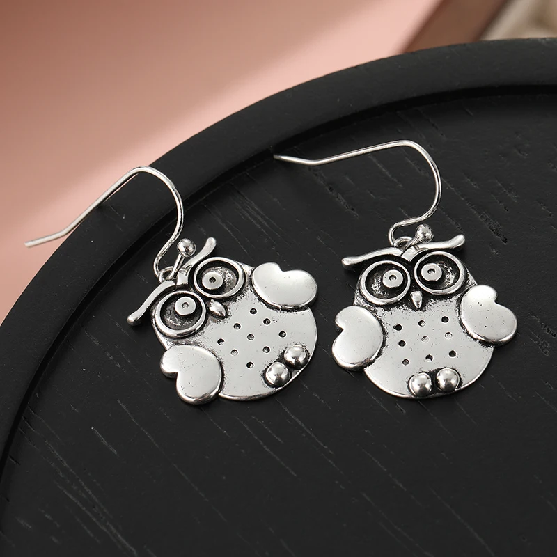 Imagine adding a touch of playful elegance to your outfit with these vintage-inspired owl dangle earrings. Crafted from copper alloy with a charming silver finish, they feature a distinctive owl motif, complete with large, cartoonish eyes and tiny ear tufts. The heart-shaped outline and textured hammered wings create a lovely, reflective surface that catches the light beautifully. Decorated with delicate dotted patterns and tiny spherical accents resembling feet, these earrings blend whimsical animal charm with vintage style. Perfect for elevating your look at parties, anniversaries, or daily outings, they provide a delightful balance of fun and sophistication. Feel confident every time you wear them, knowing they’re crafted with care for your personal style.