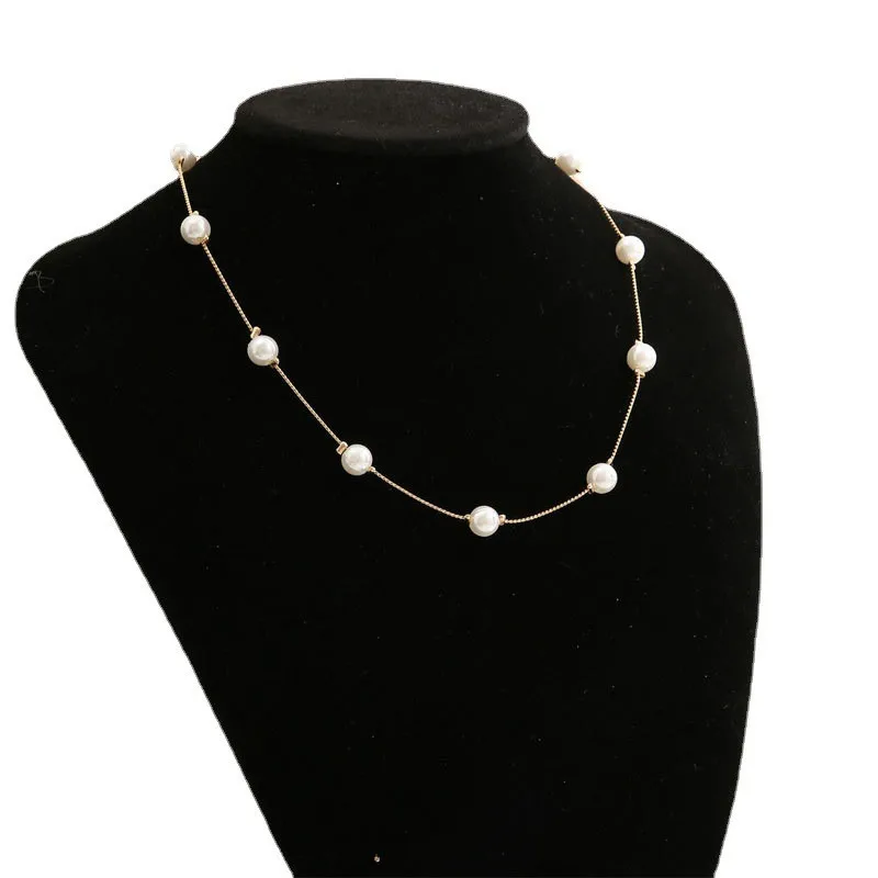 Indulge in timeless elegance with this delicate women's jewelry choker necklace. Featuring a fine, gold-colored chain adorned with large, perfectly round simulated pearl beads, it offers a luxurious vintage aesthetic. The lustrous, smooth surface of the pearls mimics natural pearls, giving your style an understated sophistication perfect for weddings, parties, or special occasions. This versatile piece sits snugly around your neck as a classic choker, accentuating your neckline with grace. Available in multiple colors with unique code options, it seamlessly complements various outfits. Crafted with attention to detail, this fashion jewelry piece combines vintage charm with modern refinement, helping you feel confident and elegant in any setting. Envision yourself wearing this stunning necklace and treasure its charm daily.