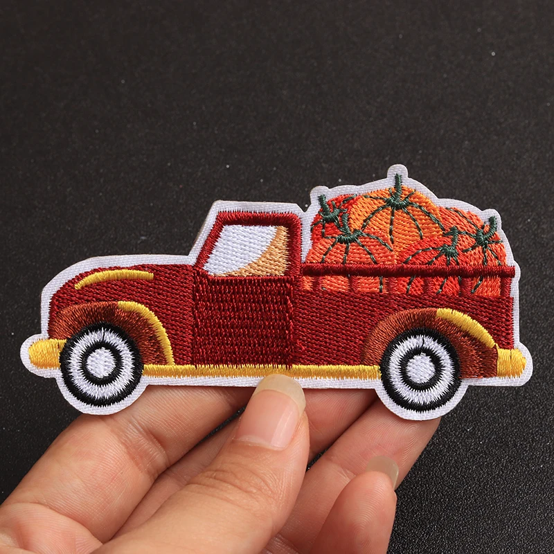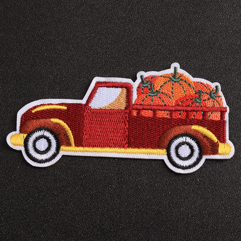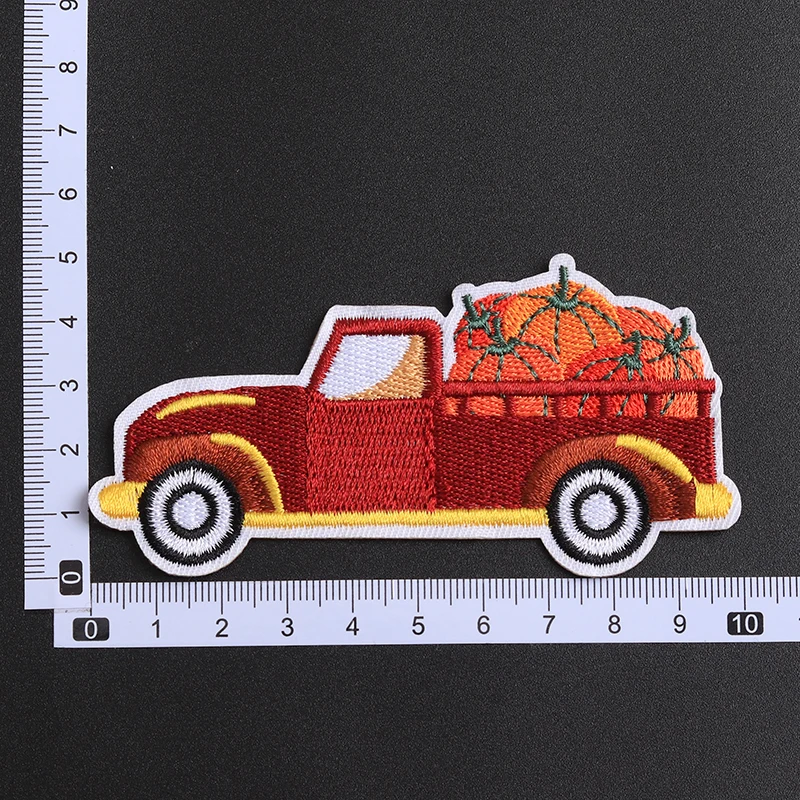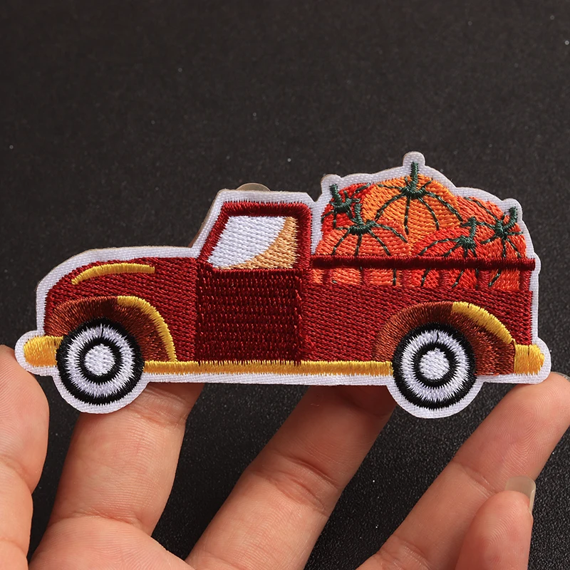 Transform your clothing creations with this charming set of 5 vintage pickup truck patches, each measuring 10×5 cm. Adorned in vibrant red with delightful yellow outlines, these patches capture the essence of autumn with pumpkins nestled in the cargo bed, accented by green vines. Made from eco-friendly non-woven fabric, the beautifully embroidered texture lends a handmade touch. Easy to apply, simply use a household iron or heat press machine to add a unique, artistic flair to your favorite clothing items and accessories! Whether you want to embellish jackets, bags, or home decor, these patches are the perfect addition to your creative projects.