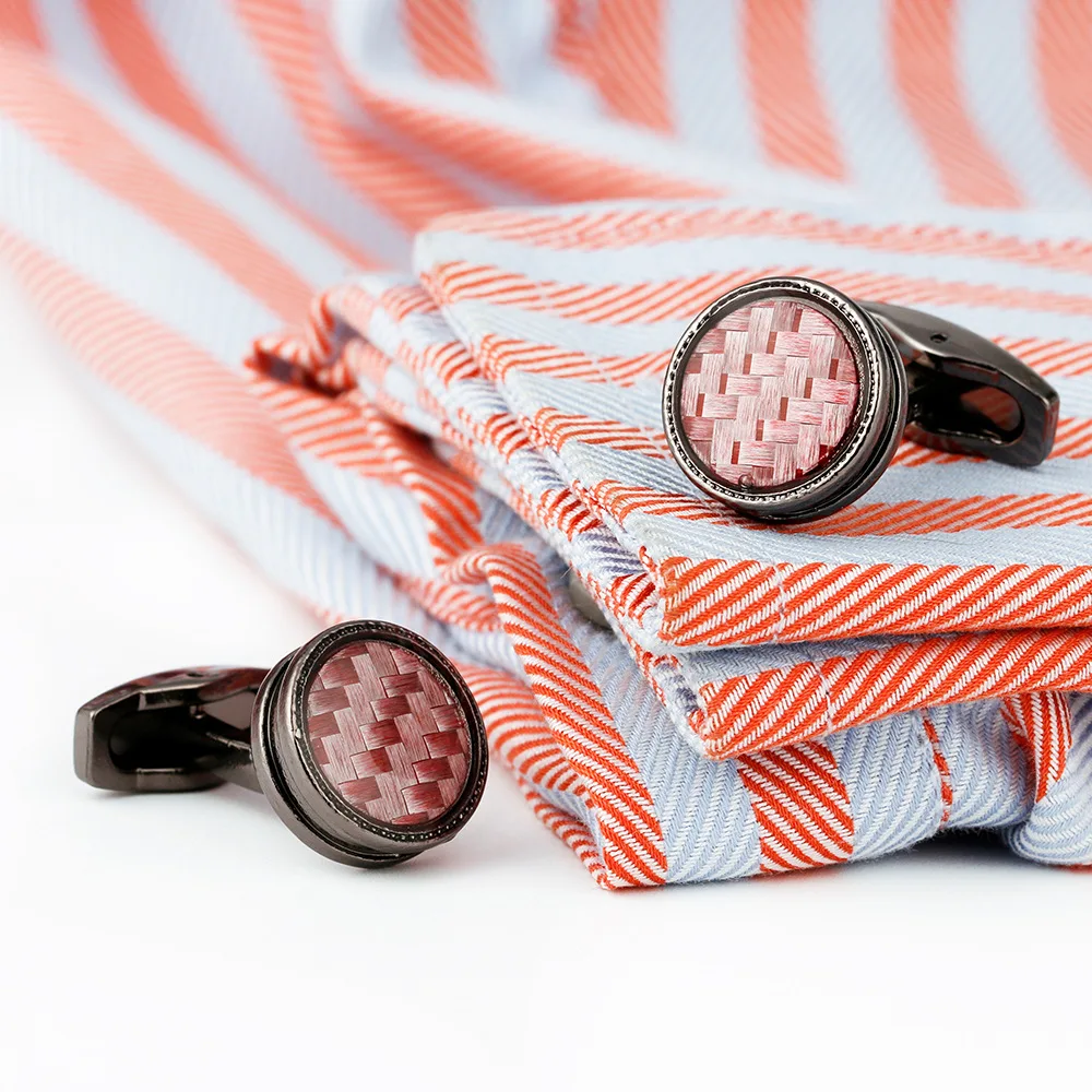 Step into sophistication with these vintage round cufflinks, designed to add a touch of vintage charm and modern elegance to your wardrobe. Made from alloy material with a light grey hue, they feature a beautifully textured pink woven center, highlighted by a sleek silver-edged frame that accentuates their timeless appeal. These cufflinks are perfect for dressing up formal shirts or relaxing semi-formal outfits, giving you the confidence and flair to stand out effortlessly. Whether for special occasions or everyday style, they blend versatility and style seamlessly. Their unique textured design and subtle sheen create a captivating visual effect, making them a versatile accessory for any look.