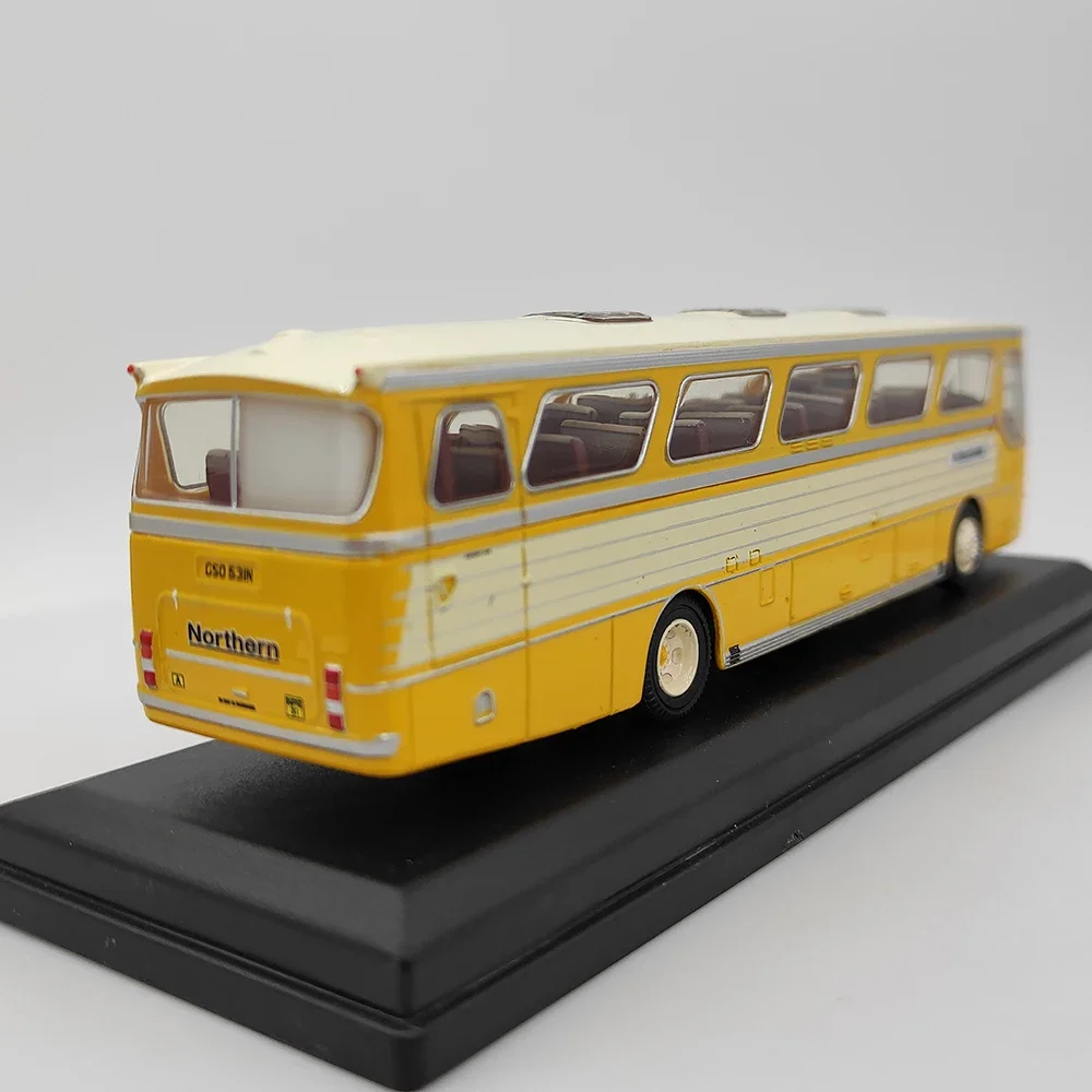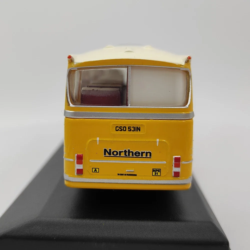 - The model features classic design elements, including a bright yellow body with white and grey accents, reflecting the vibrant look of vintage buses.