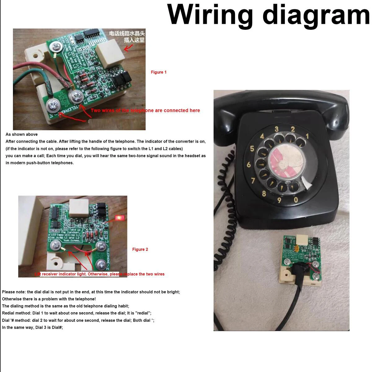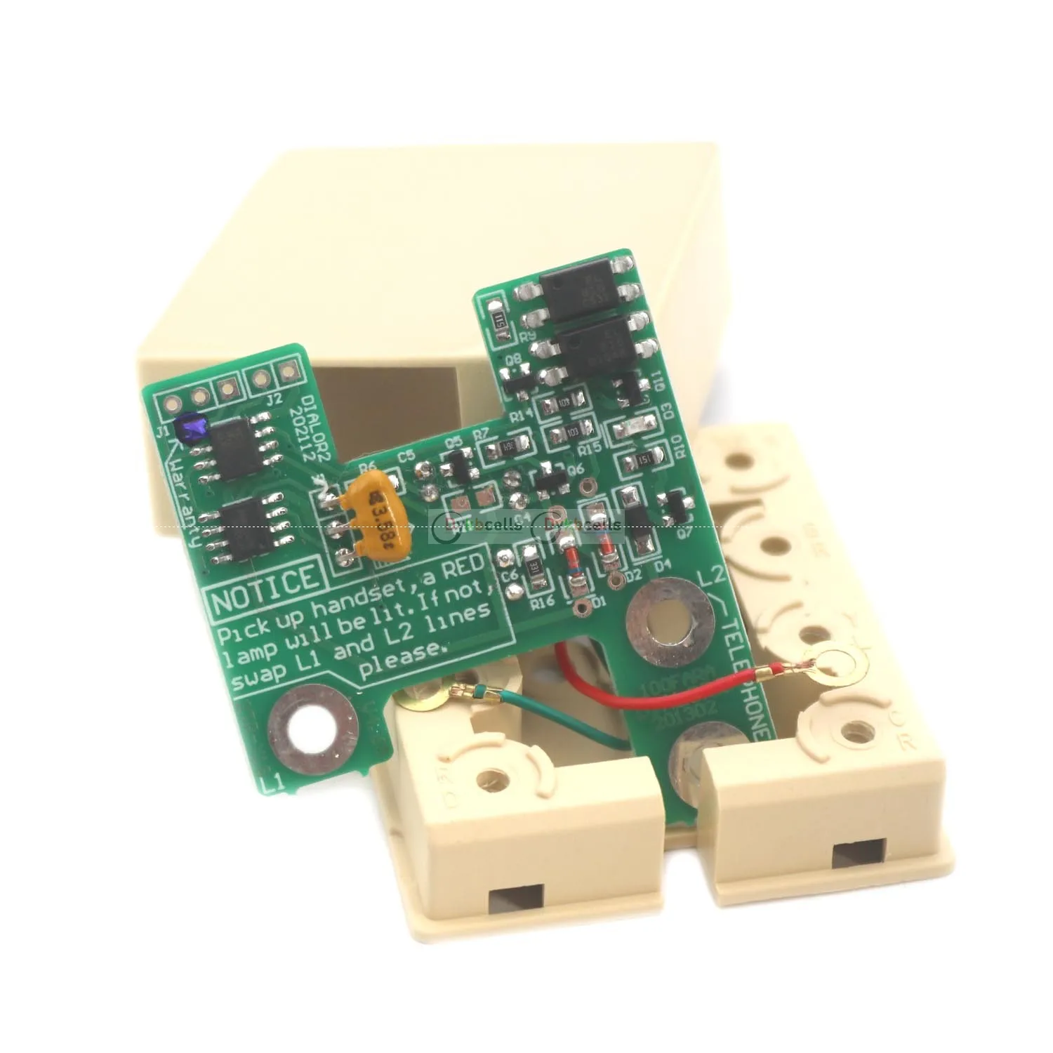 Experience seamless integration of your vintage rotary or old dial telephone with modern communication systems using this reliable pulse-to-DTMF converter. Featuring a compact green PCB densely populated with black integrated circuits, resistors, capacitors, and a purple potentiometer, this module exudes a technical yet vintage aesthetic. Easy to connect via screw terminals labeled “Connect the telephone 2 cable,” it’s designed for 32V or 48V DC power with a current range of 20-40mA. Once installed, your old phone can dial normally on non-dial lines, with useful features like redial and “#” and “*” functions. This device ensures your classic telephone remains functional, blending nostalgic charm with modern convenience.
