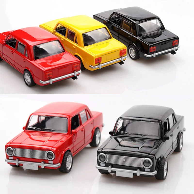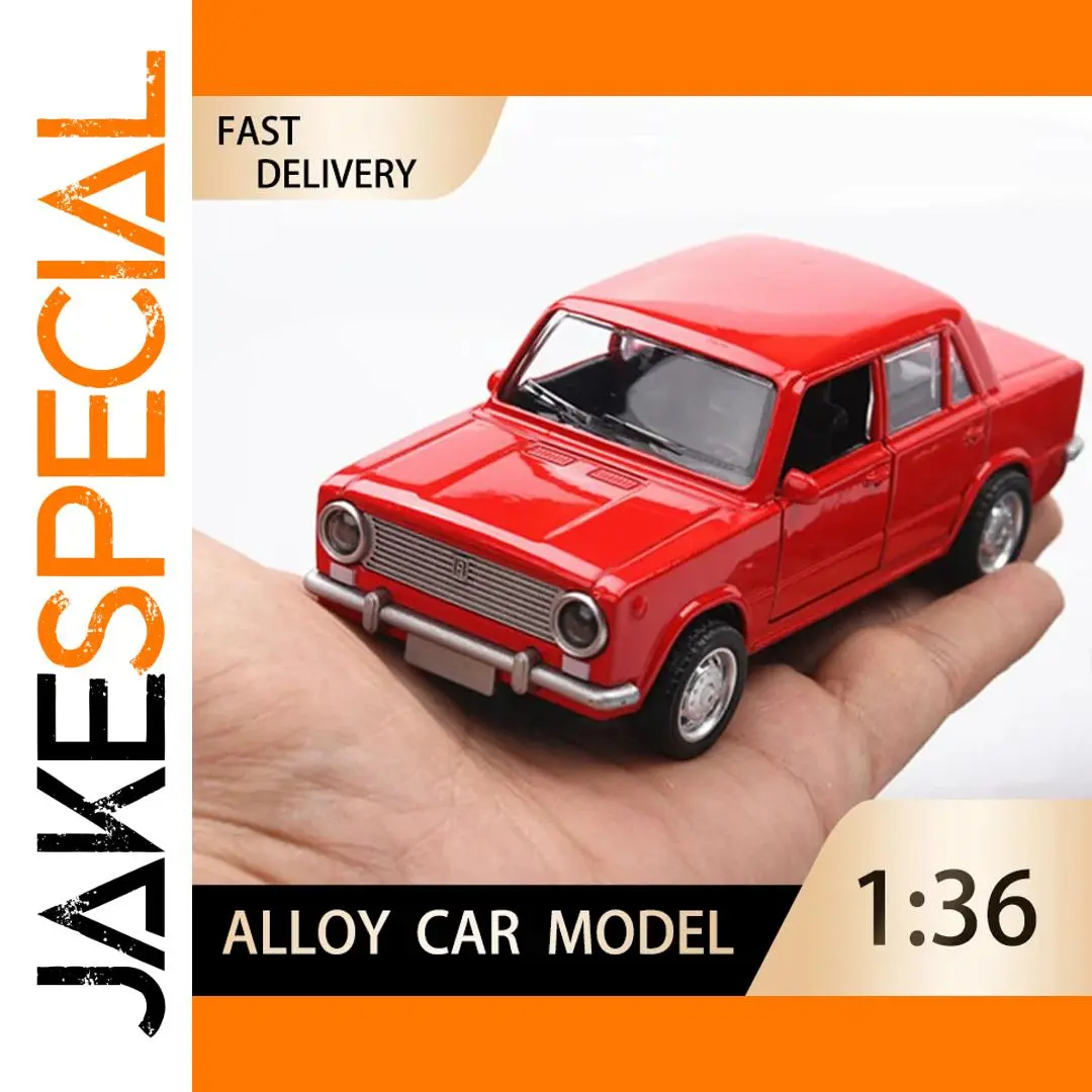 Experience the timeless charm of this vivid red miniature diecast sedan, meticulously crafted from durable metal to offer a realistic and collectible feel. Its shiny, metallic finish highlights its vintage design, featuring a distinctive boxy shape with angular lines and smooth surfaces. The detailed front grille houses round headlights with black trim, complemented by a minimalistic silver bumper—perfect for collectors who appreciate authenticity. The side profile showcases four doors with carefully modeled handles, clear glossy windows, and small side mirrors. Silver hubcaps and detailed tire treads add to its realism. Suitable for display, this model’s precise craftsmanship makes it an ideal gift or addition to your collection, capturing the essence of classic automotive style.