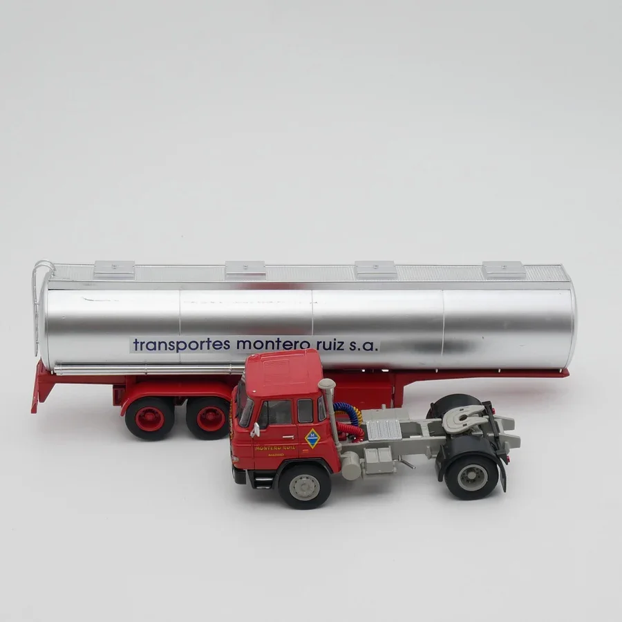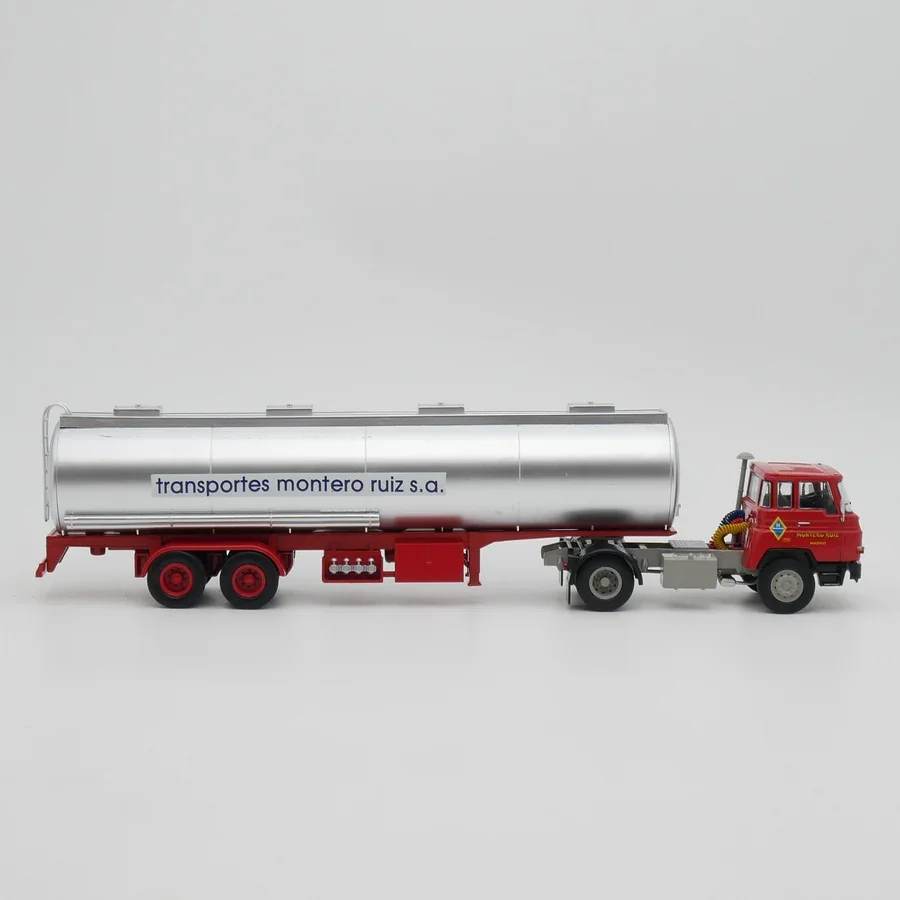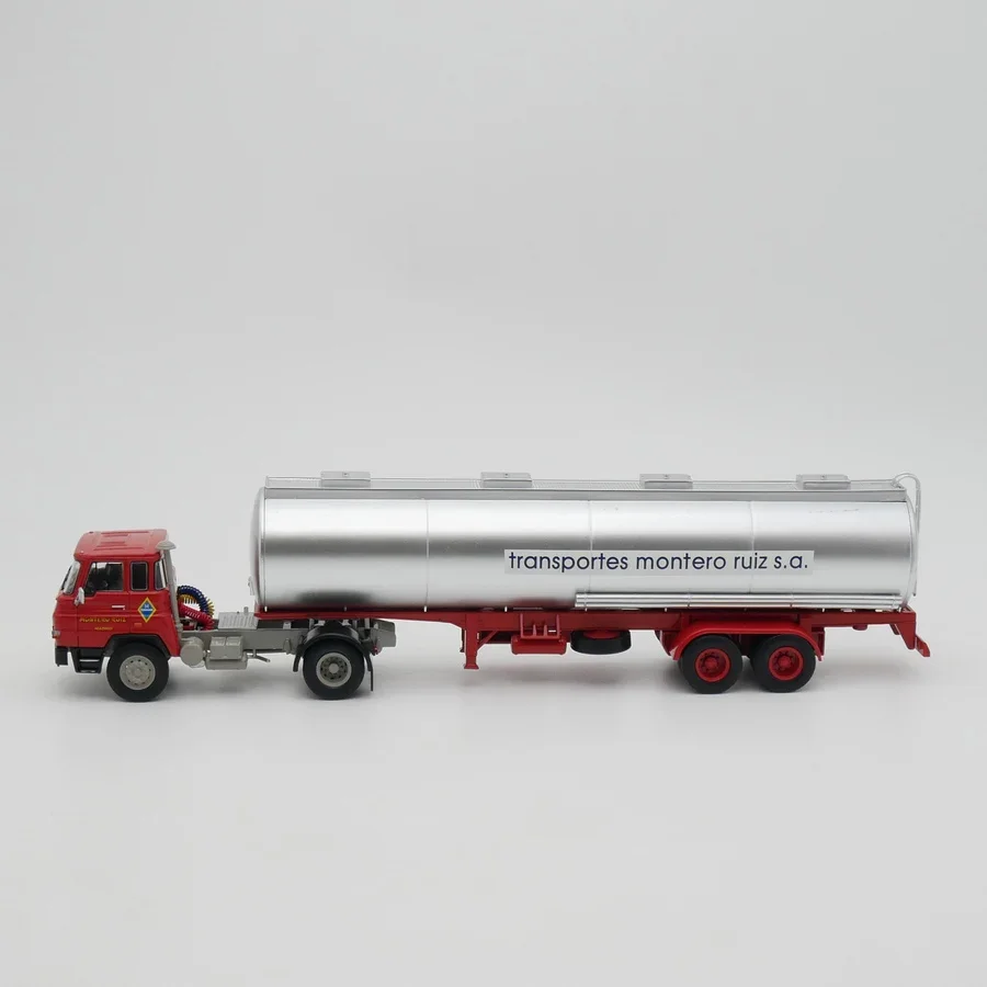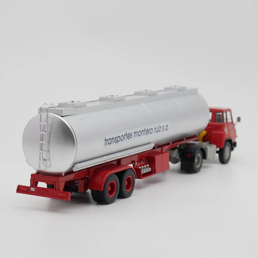 Experience the craftsmanship of this detailed diecast model, perfect for collectors who appreciate authenticity and fine design. Measuring approximately 35 centimeters, this replica portrays a classic Spanish truck trailer, specifically the BARREIROS 4238T. Crafted from alloy and plastic, its vibrant red cab and silver tanker trailer create a visually striking contrast, showcasing realistic panel lines, rivets, and a high-quality paint finish. The transparent cab windows reveal a meticulously detailed interior, including seats and a steering wheel, adding to its authentic appeal. Though purely a static display piece, this model offers exquisite craftsmanship and attention to detail that makes it a captivating addition to any collection or display shelf.