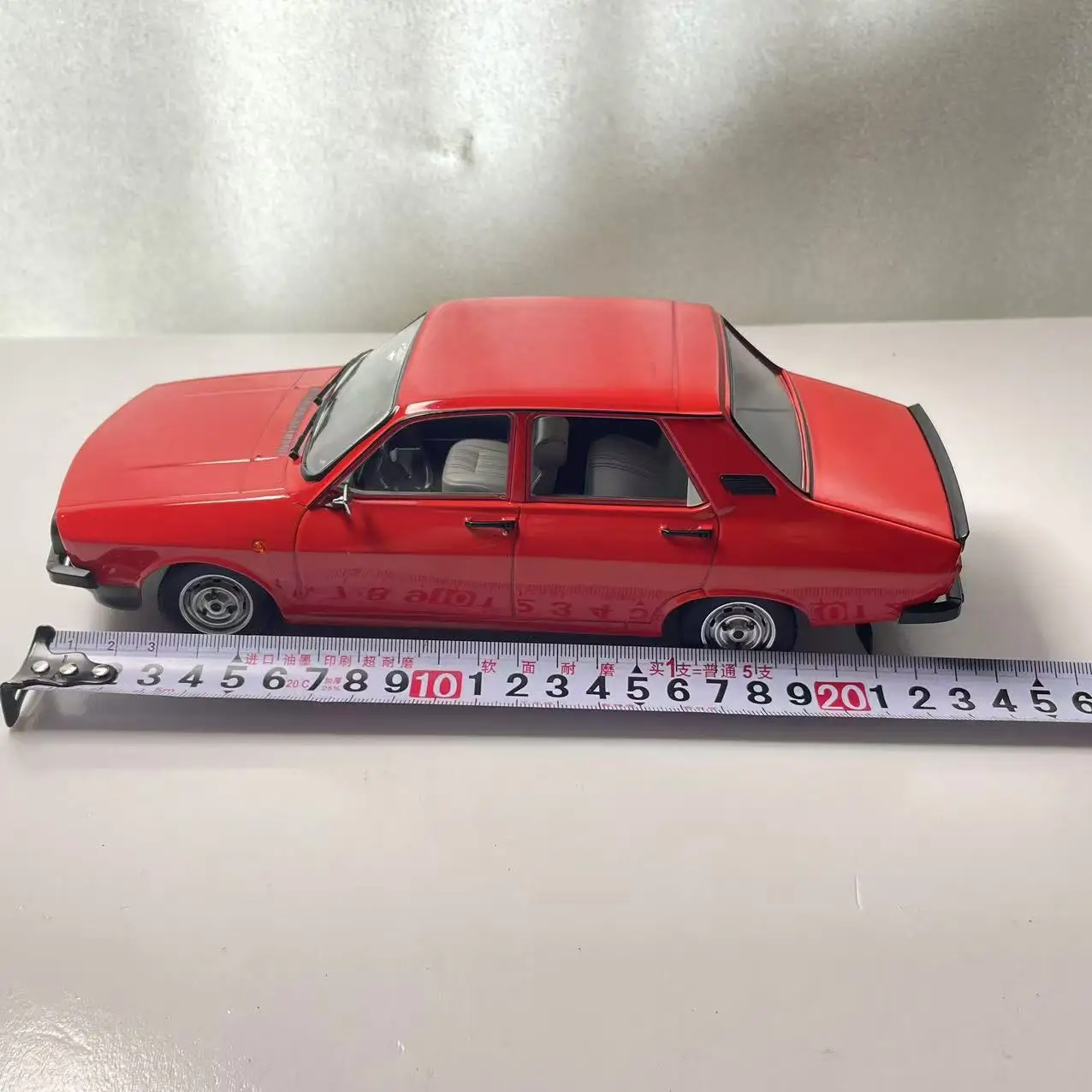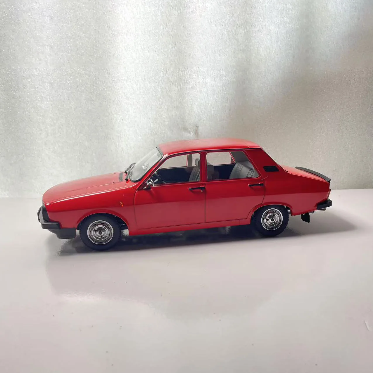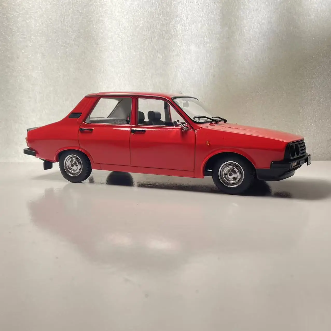 Imagine adding this striking red Dacia 1310 TLX die-cast model to your collection — a realistic, vintage-inspired miniature that commands attention with its vivid color and detailed craftsmanship. Measuring approximately 23.5 centimeters long, this static display piece features a sturdy alloy body complemented by ABS plastic and rubber components for realistic touches. The meticulously designed front grille, bumper, and side mirrors reflect authentic details, while the transparent windows reveal a minimalistic black interior. Though the paint surface shows slight imperfections like scratches and flaws, these add to its authentic charm. Perfect for display, gifting, or hobby use, this model is a true testament to detailed craftsmanship and vintage automotive style.