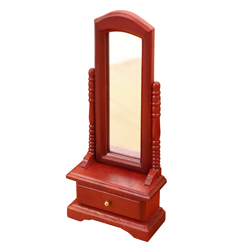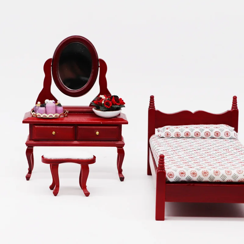 Elevate your dollhouse collection with this exquisite 1:12 scale miniature bedroom furniture set featuring a rich mahogany finish. Includes a dressing table (10.5 x 4.1 x 14.3 cm) with a curved oval mirror, a matching dressing stool (5.2 x 3.3 x 3.8 cm), a dresser (9.3 x 3.7 x 11.8 cm), a cabinet (9.3 x 4 x 15.5 cm), a fitting mirror (5.8 x 2.6 x 13.5 cm), and a detailed piano (8.9 x 8.8 x 6.8 cm) weighing 112g. Crafted from quality wood, these vintage-style ornaments are perfect for creating a timeless, cozy ambiance that captures intricate craftsmanship and traditional charm, designed specifically for adult collectors and enthusiasts.