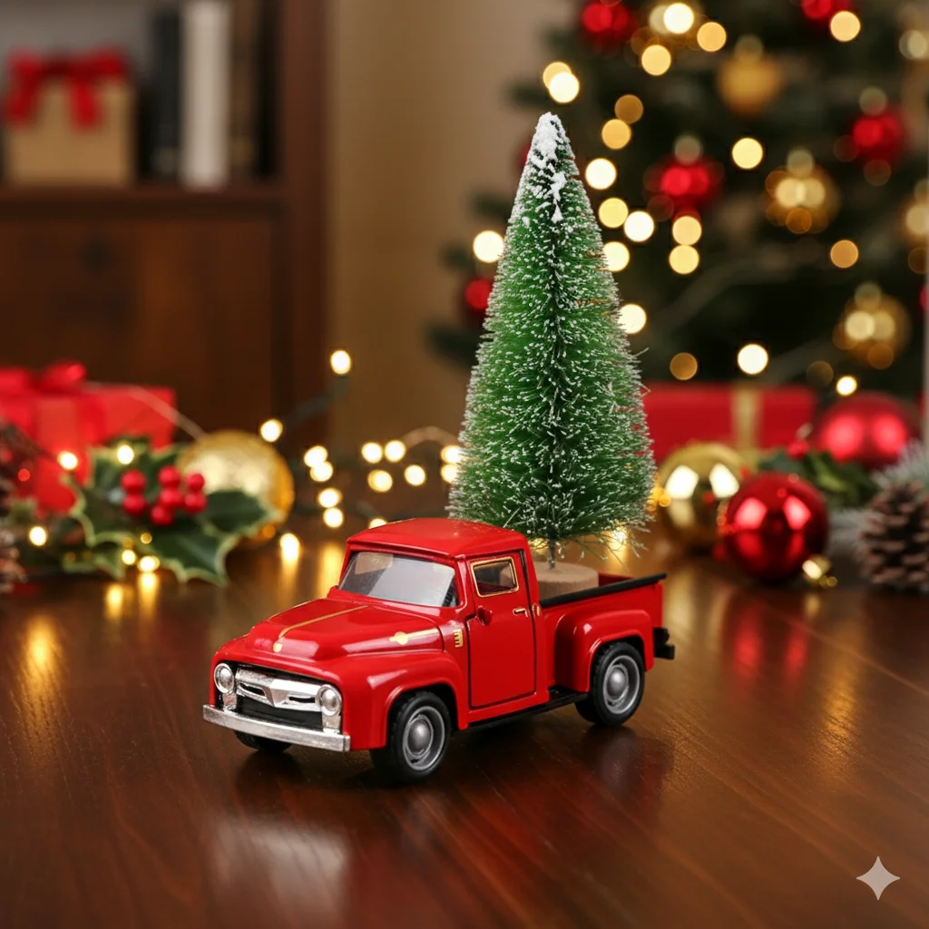 Vintage Red Pickup Model for Holiday Decor