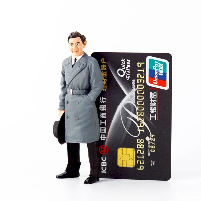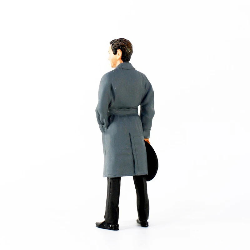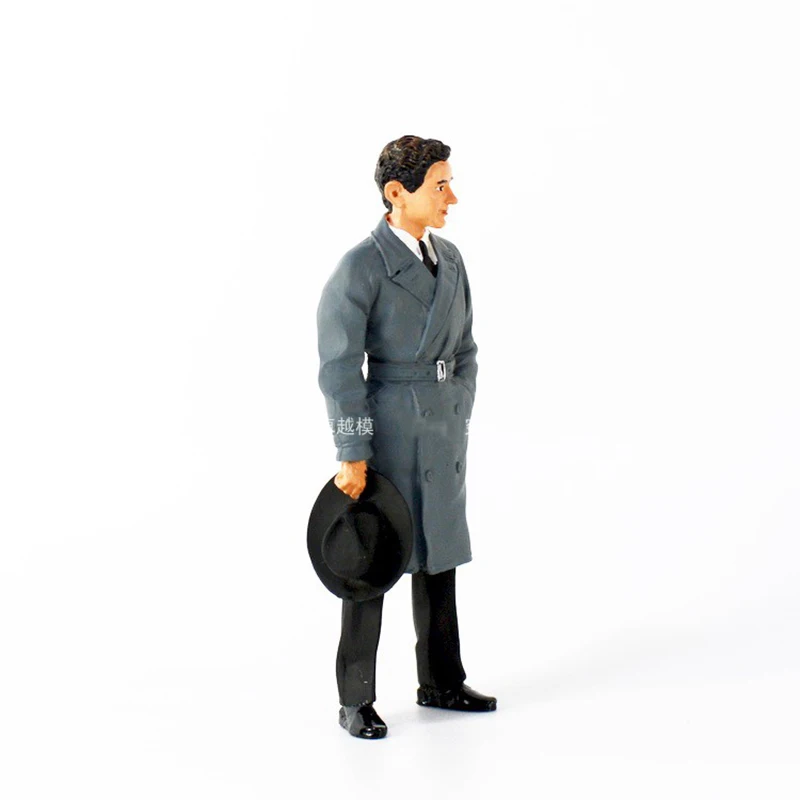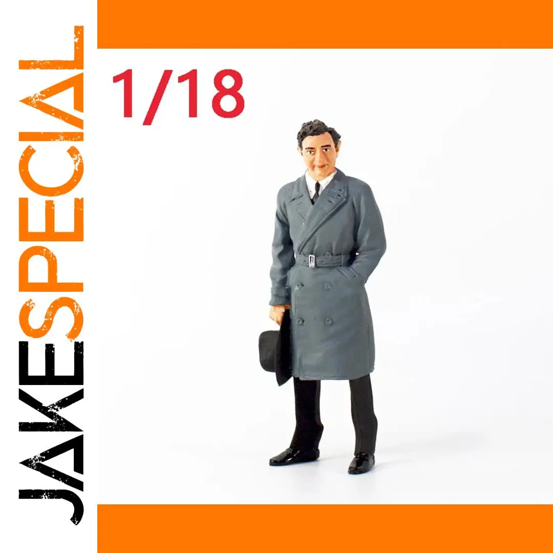 Step into the world of classic style with this highly detailed resin figure, meticulously crafted to evoke a mid-20th-century aesthetic. Standing approximately 9.9 cm tall, this 1/18 scale model offers a realistic and polished appearance, perfect for enhancing your car dioramas or display shelves. Dressed in a sophisticated gray double-breasted trench coat, complemented by a crisp white shirt, dark tie, and polished black shoes, this figure embodies a timeless, professional look. Its friendly expression and styled dark hair add warmth to the scene, making it an ideal decorative piece for adult collectors. With a smooth finish and precise painting, this model exudes elegance and authenticity, ready to enhance any display with its vintage charm.