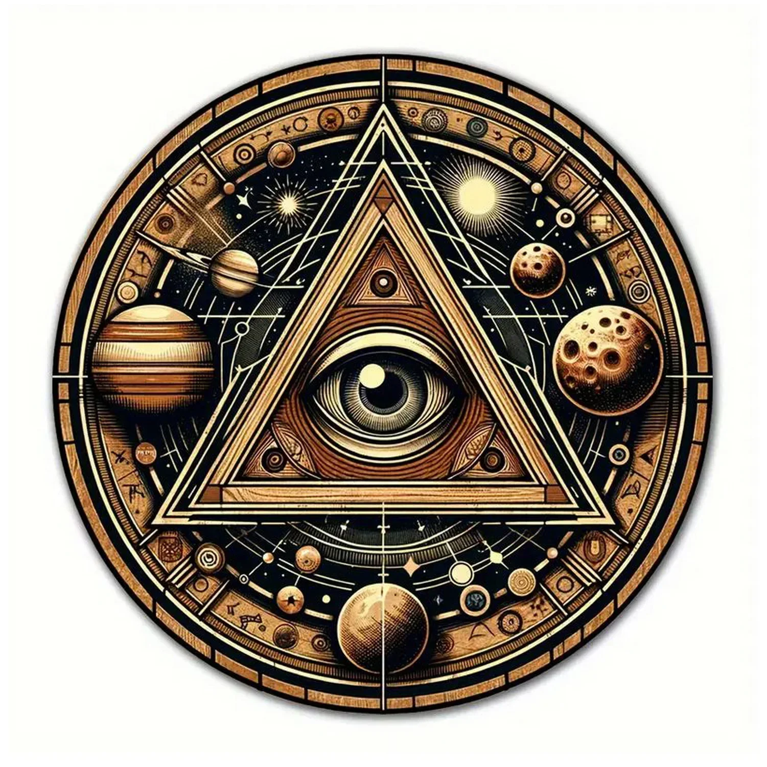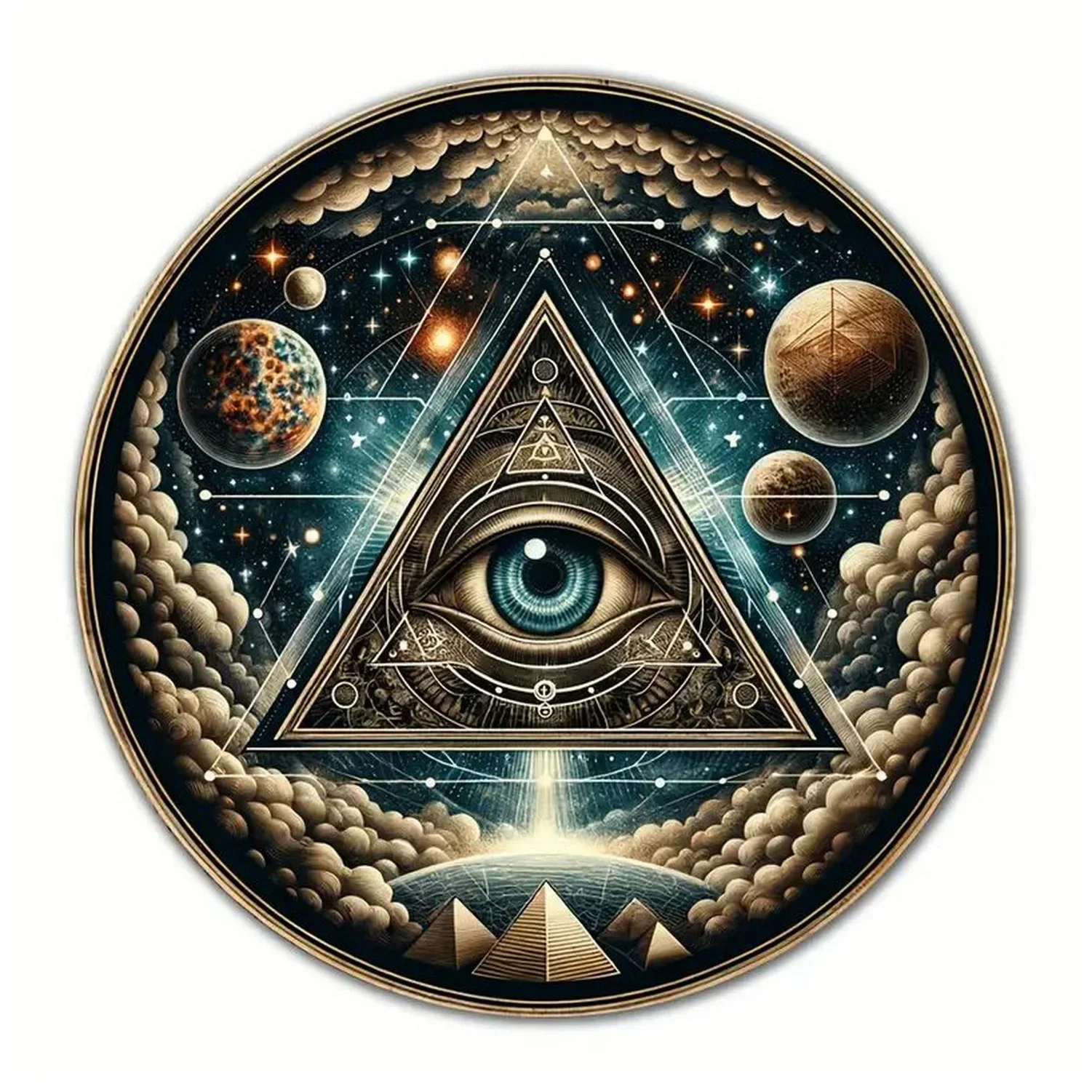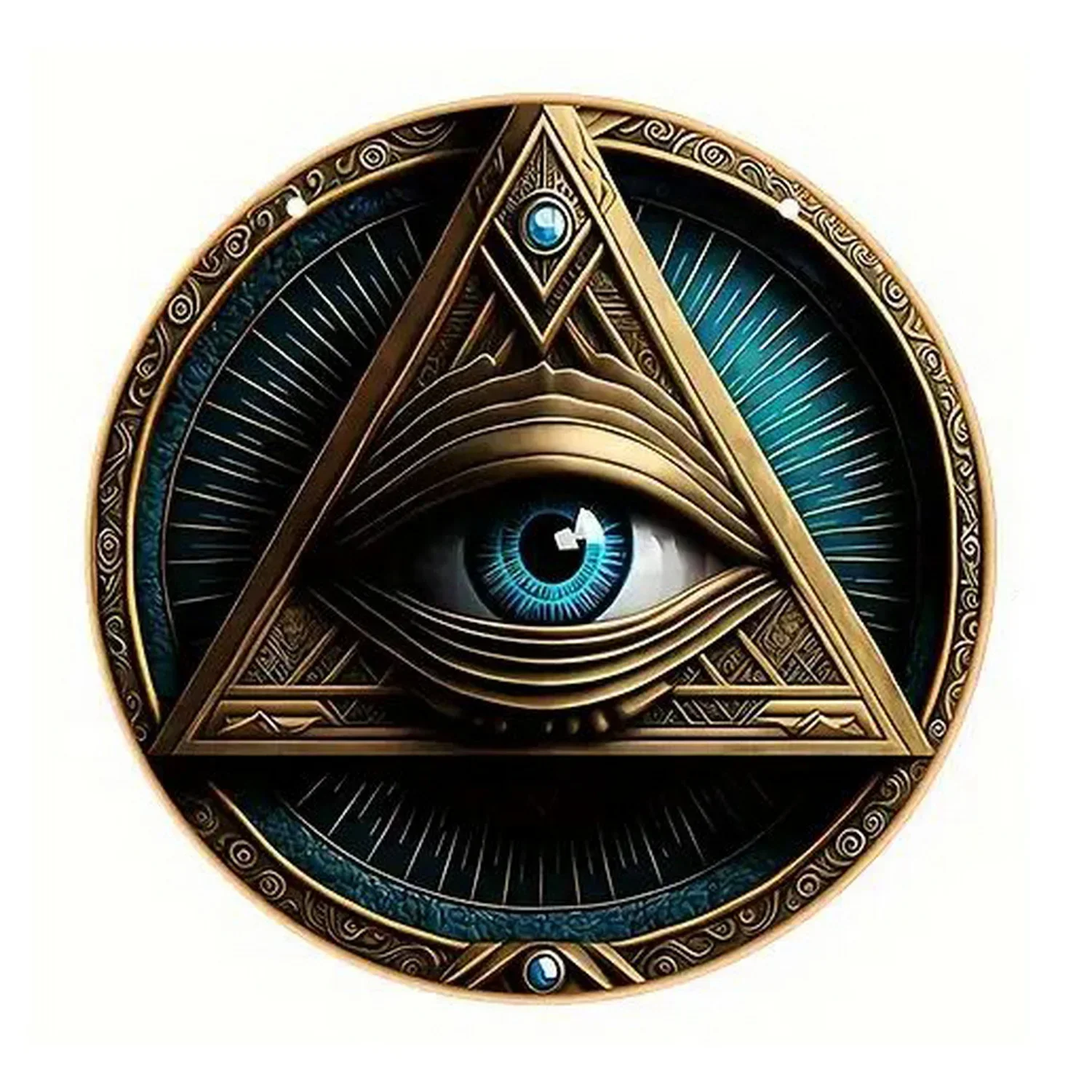 Imagine adding a touch of vintage charm to your space with this beautifully crafted retro round metal tin sign. Available in two sizes—20cm x 20cm aluminum and 30cm x 30cm iron—this sign features a timeless design with a vintage finish that effortlessly blends nostalgia with style. Its intricate, mystical artwork showcases eye motifs, celestial themes, and geometric patterns rendered in shades of blue, gold, brown, and vibrant colors. Pre-drilled holes make mounting easy, whether inside your bar, cafe, garage, or home. Lightweight and durable, this decorative piece transforms ordinary walls into captivating focal points. Imagine it hanging proudly on your wall, sparking conversations and admiration from guests and visitors. This sign is perfect for adding personality and a unique vibe to your favorite spaces.