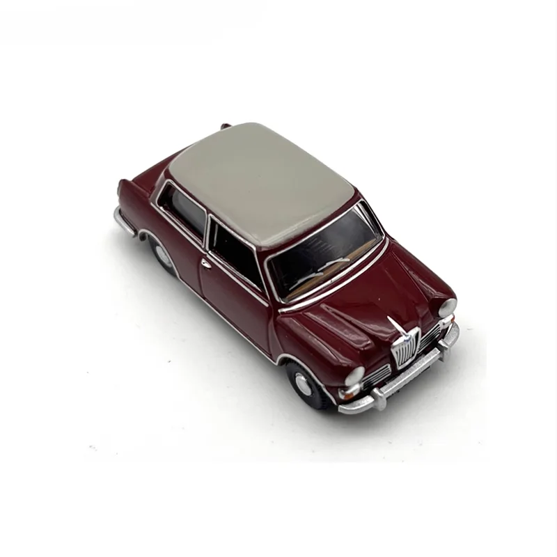 Immerse yourself in nostalgia with this beautifully crafted diecast model of the Riley-elf MKIII at a 1/76 scale. Replicating a classic 1960s vintage car, it boasts smooth, rounded contours and a glossy deep maroon body accented by a contrasting light-colored roof. Chrome details on the bumpers, side mirrors, and wheel trims enhance its authentic look, while the vertical-bar grille and round headlights evoke timeless retro charm. Small black tires with metallic hubcaps complete the realistic aesthetic. Designed as a static display piece, it’s ideal for collectors or as a refined gift, offering a touch of vintage elegance to any space. Its compact size emphasizes fine detailing, making it a beautiful decorative item.