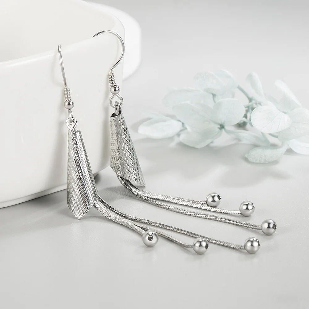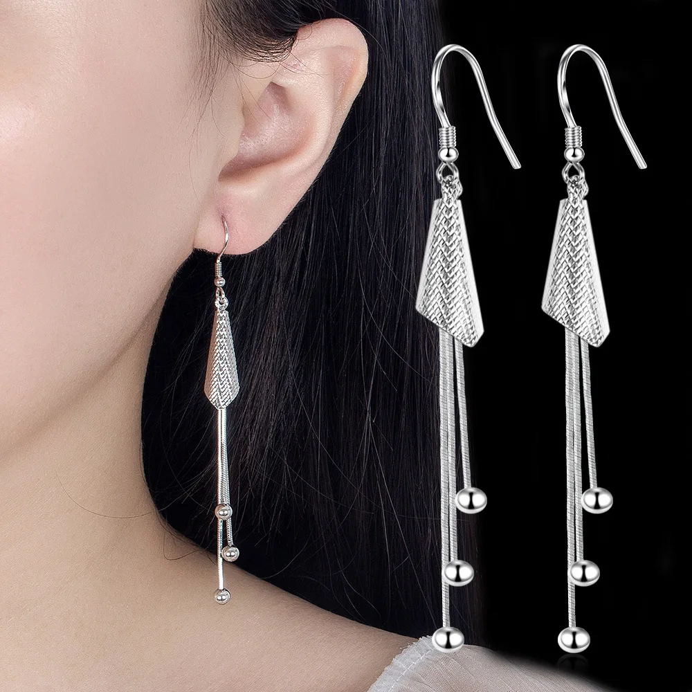 Experience the captivating charm of these this elegant silver drop earrings, designed to elevate your style with their vintage-inspired neo-Gothic aesthetic. Crafted from high-quality Tibetan silver, these earrings feature a glossy, reflective surface that exudes sophistication. The irregular, elongated geometric shape with a textured lattice pattern adds depth and intrigue, making them perfect for special occasions such as weddings, parties, or anniversaries. Dangling from the main body are delicate chains ending in small, spherical beads that sway gently with every movement, offering a dynamic, tassel-like effect. Weighing about 4.2 grams and stamped with a “925” silver hallmark, these earrings are ideal for women seeking a bold, fashionable statement piece that combines elegance with artistic flair.