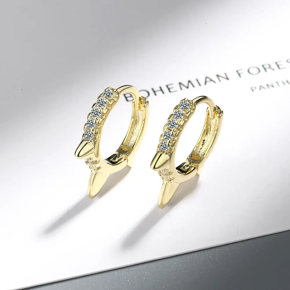 Imagine adding a touch of vintage charm to your look with these refined earrings. Crafted from high-quality 925 sterling silver, they feature a delicate geometric design that exudes timeless elegance. The earrings are accented with a single row of sparkling zircon stones, beautifully arranged along the upper edge to catch the light with every movement. With their hoop shape and starburst-inspired detail protruding from one side, they offer a playful yet sophisticated silhouette. Available in both radiant gold and sleek silver tones, they seamlessly complement any wardrobe. Weighing just 1.5 grams, these earrings provide a lightweight, comfortable fit, perfect for everyday wear or special occasions. Elevate your jewelry collection with this versatile and chic accessory.
