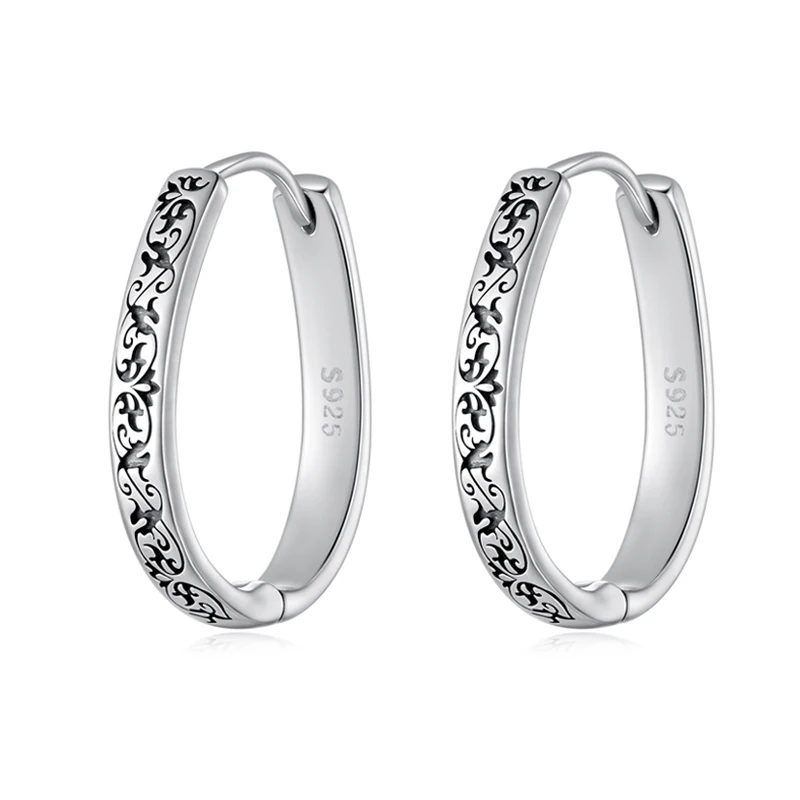 Imagine yourself wearing these exquisite vintage-inspired hoop earrings, crafted from genuine 925 sterling silver. Each earring features a delicate round shape with a diameter of 2.0 cm and a width of 0.3 cm. The detailed engraved scroll and flower patterns on the surface tell a story of timeless craftsmanship, while the smooth inner surface ensures comfort with every wear. Weighing only 2.8 grams, they offer lightweight elegance suitable for daily use or special occasions. Adorned with sparkling zircon stones and authenticated with a GDTC certificate, these hypoallergenic earrings combine style and quality effortlessly. Their versatile design makes them perfect for enhancing your look at weddings, parties, anniversaries, or as a thoughtful gift to loved ones.