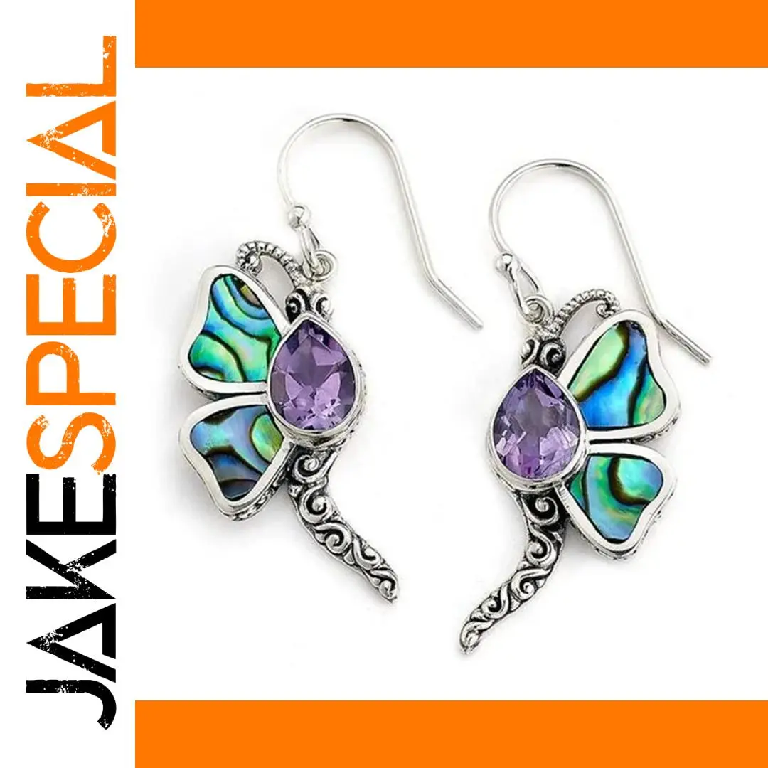 Elevate your style with these vintage-inspired drop earrings crafted from silver-colored zinc alloy, featuring a detailed animal-inspired carving pattern and a captivating purple stone accent. The design includes elegant shell and dragonfly motifs, exuding ethnic and vintage charm. The teardrop-shaped purple gemstones are faceted for a luminous effect, set above iridescent, multicolored shell inlays that shimmer in vivid hues of emerald green, royal blue, and black. Perfect for women and girls, these earrings are versatile enough for parties, weddings, engagement celebrations, or daily wear, offering a delicate and sophisticated accessory to enhance any occasion.