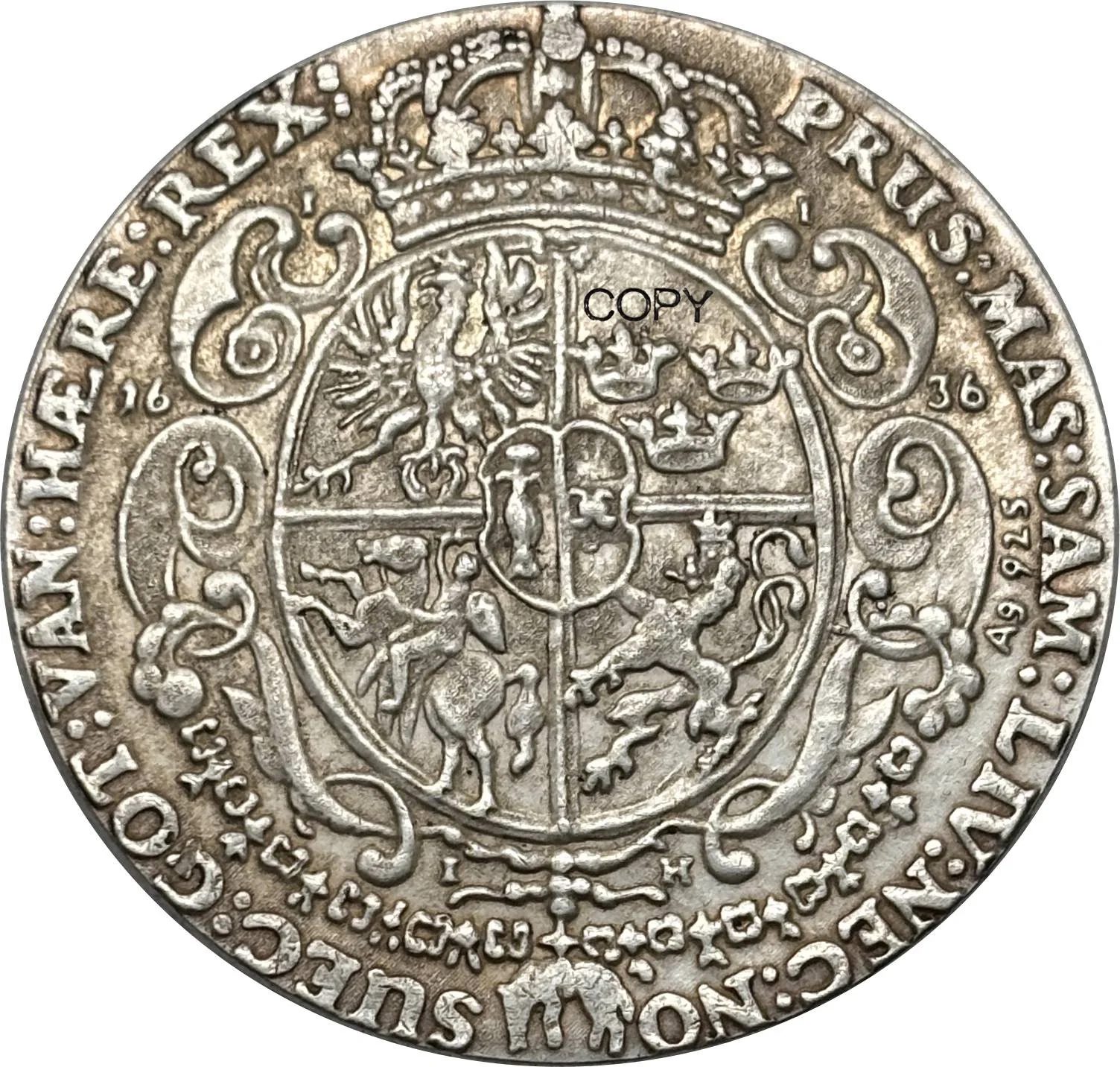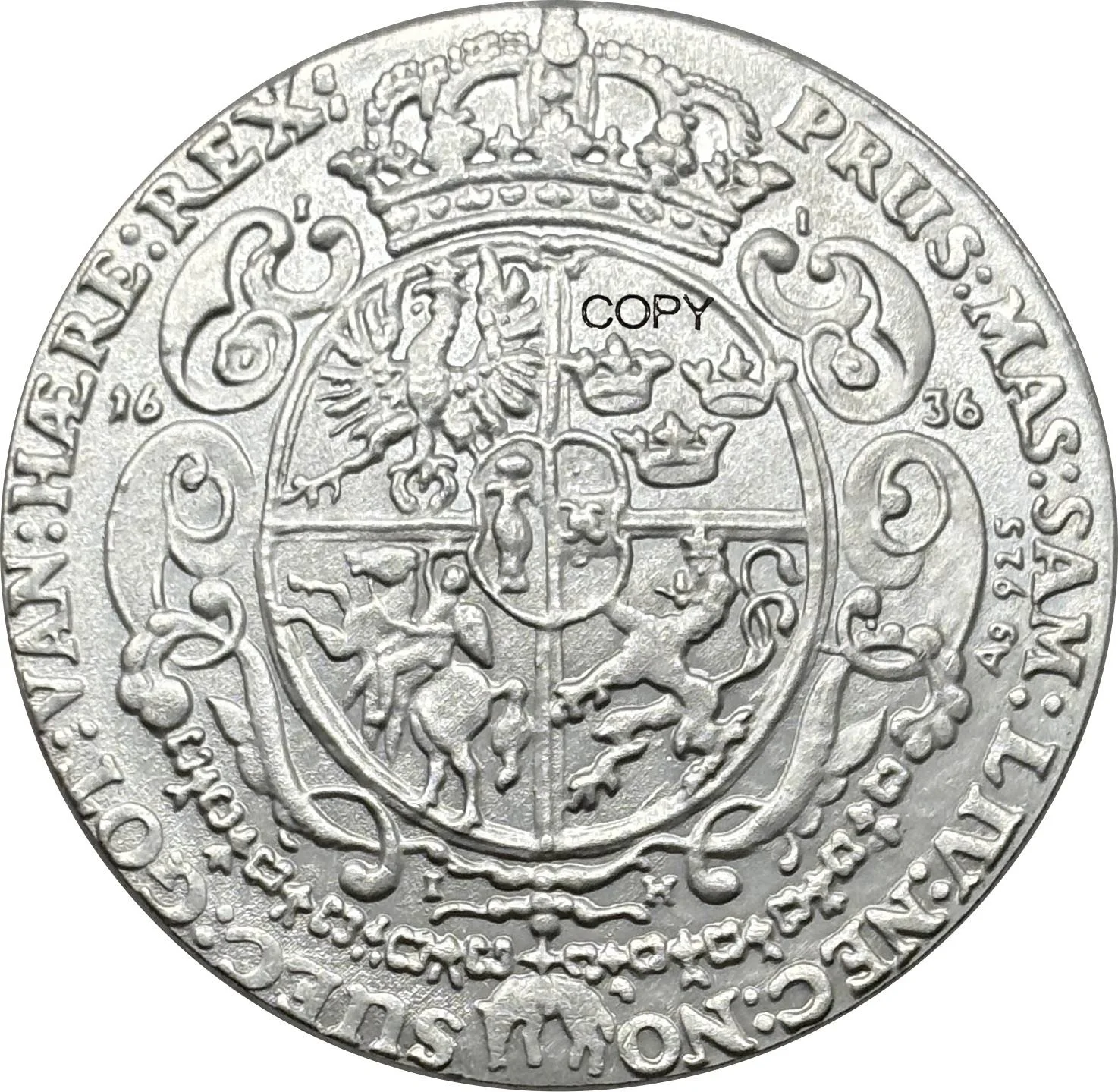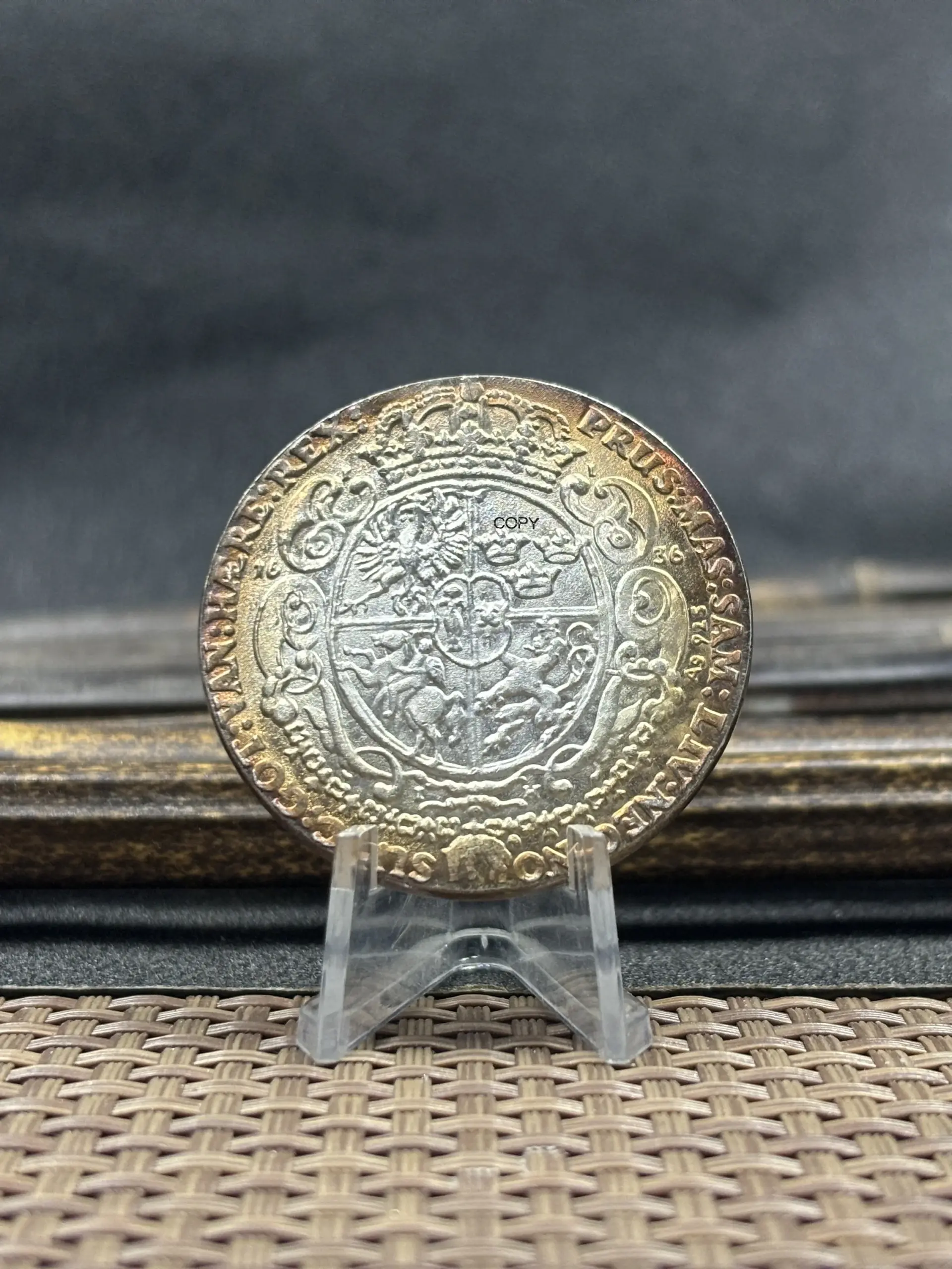 - Features an uppercase inscription around the edge, adding a classical and regal touch suitable for display or collection.