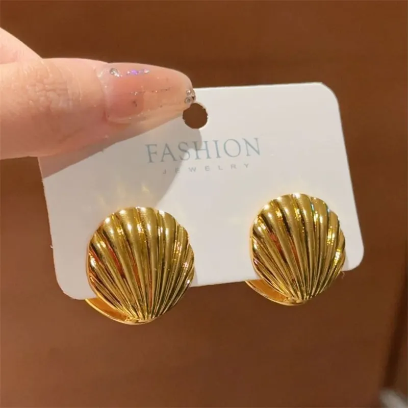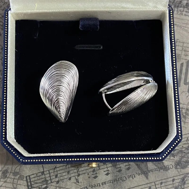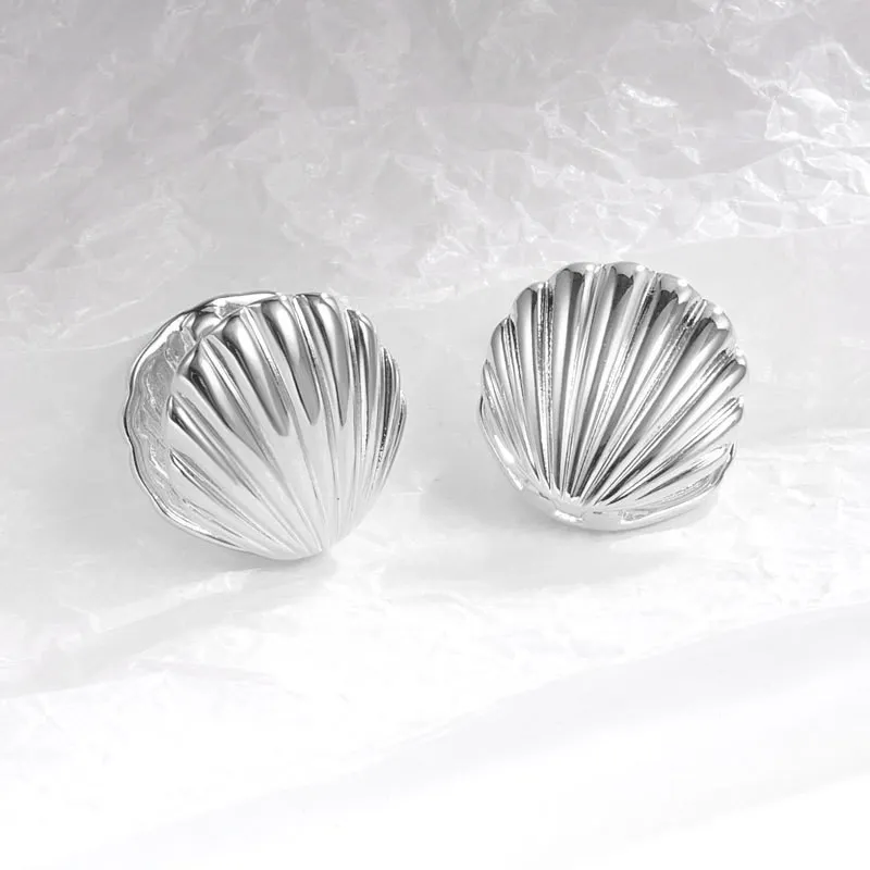 Elevate your style with these vintage-inspired metal shell stud earrings featuring a striking geometric, irregular design in a bright silver color. Crafted from high-quality copper alloy, each hoop earring measures 72mm in length and 45mm in width, making a bold statement perfect for fashion-forward occasions or parties. The highly polished, reflective finish showcases detailed ridges reminiscent of natural seashells, blending vintage charm with modern elegance. Available in four stylish metal color options, these sizable earrings are easy to wear with a secure clasp mechanism, offering a sophisticated yet edgy accessory for women seeking unique and eye-catching jewelry.