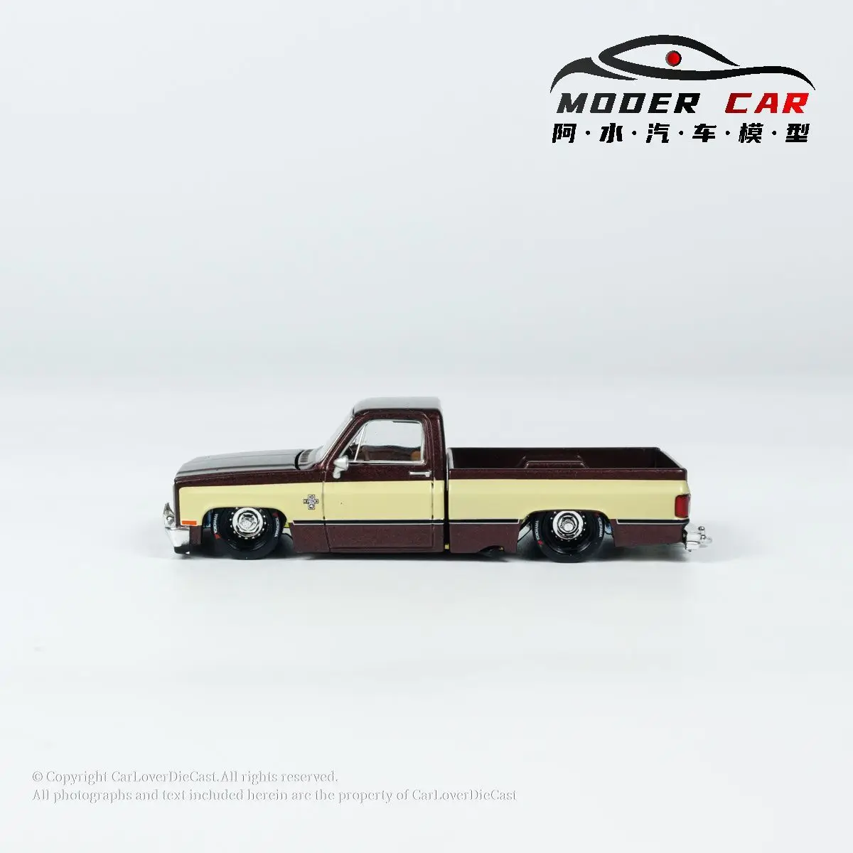 Step into a world where vintage charm meets collector’s passion with this beautifully crafted 1:64 scale diecast Silverado KAIDO Vintage Spec V1. The model’s two-tone finish immediately catches the eye—its creamy beige upper section contrasted by a rich dark brown or burgundy lower part, separated by a sleek black stripe along the side, perfectly capturing a timeless look. The detailed exterior features a classic boxy cab with clear, realistic windows, side mirrors, and elegant door handles. The front grille and bumper are finished in silver, adding a refined touch, while transparent headlights enhance authenticity. With meticulously crafted wheels, tires with detailed tread patterns, and a realistic rear flatbed cargo area, this model exudes nostalgic robustness. It’s the ideal collectible for vintage truck enthusiasts and admirers of fine craftsmanship.