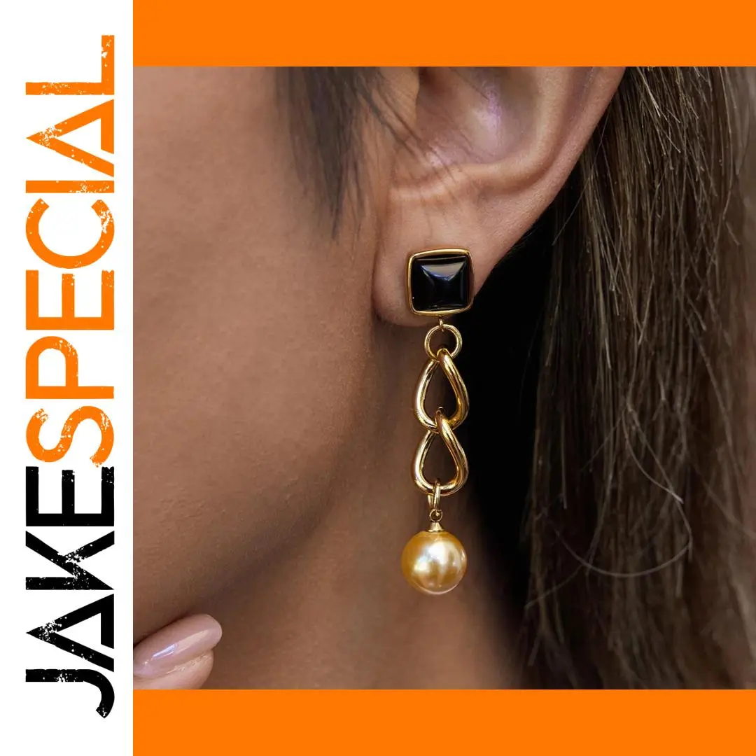 Discover the sophisticated charm of these vintage-inspired drop earrings, designed for women who appreciate a blend of modern elegance and timeless style. Crafted from durable platinum-colored stainless steel, these earrings feature a striking black stone set within a shiny square frame at the top, creating an eye-catching focal point. Dangle gracefully with layered, elongated teardrop-shaped loops made of polished gold-colored steel, adding fluid movement. At the bottom, a lustrous, pearl-like spherical bead enhances the luxurious vintage aesthetic. Perfect for parties or special occasions, these earrings combine craftsmanship with a fashionable, contemporary look that complements any outfit and elevates your style effortlessly.