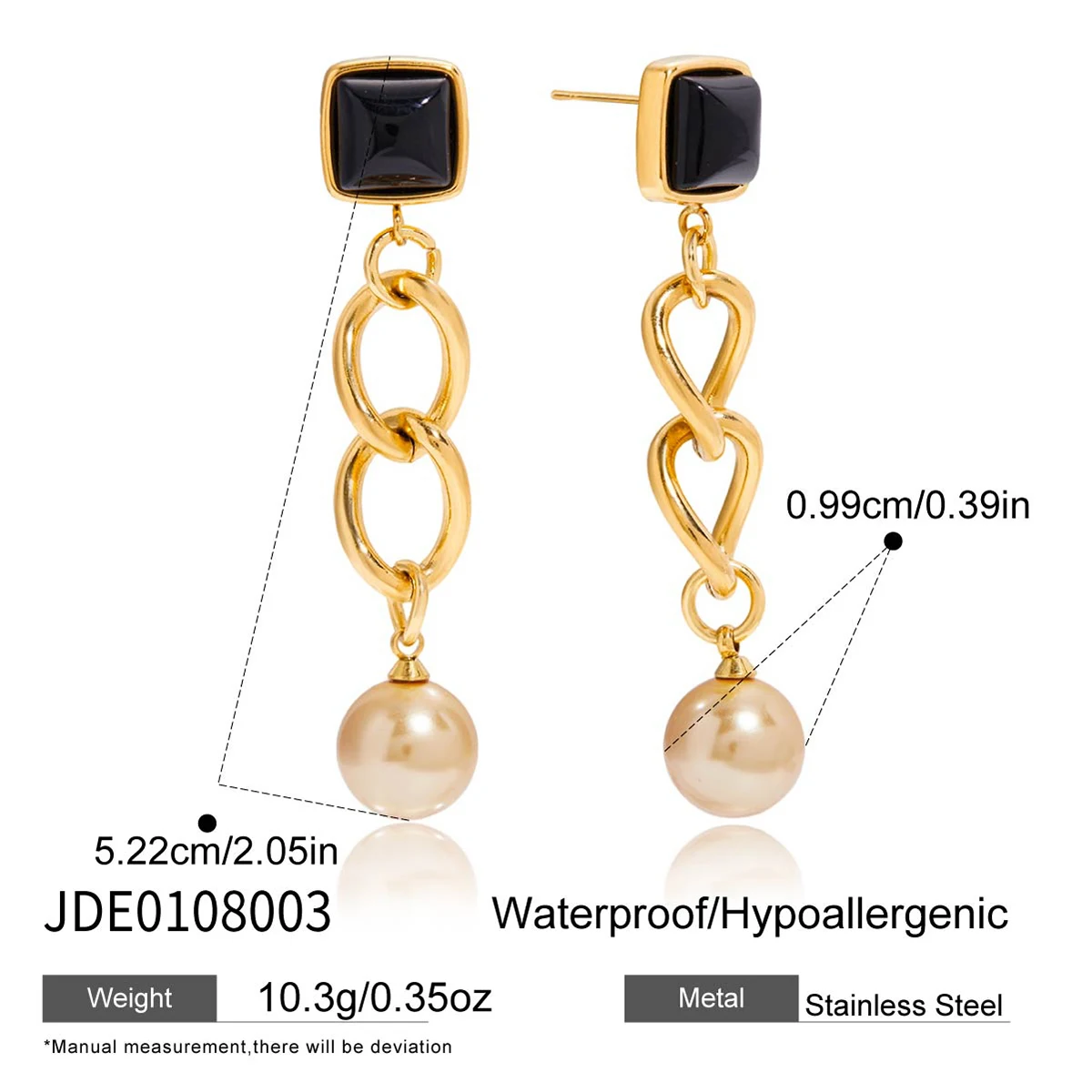 - Featuring a black square stone as the central decorative element, which provides a bold, modern contrast to the shiny gold and pearl tones for a striking visual appeal.