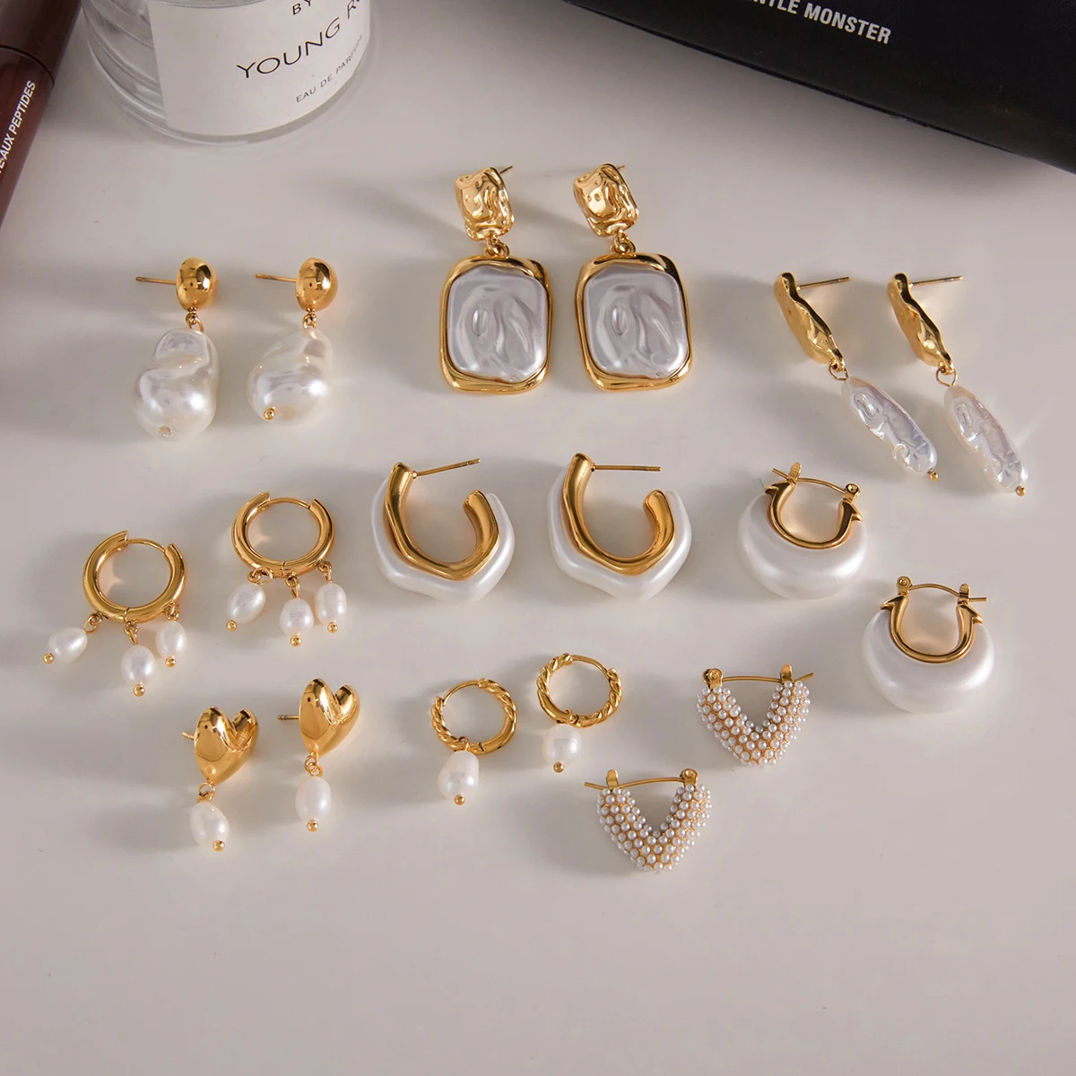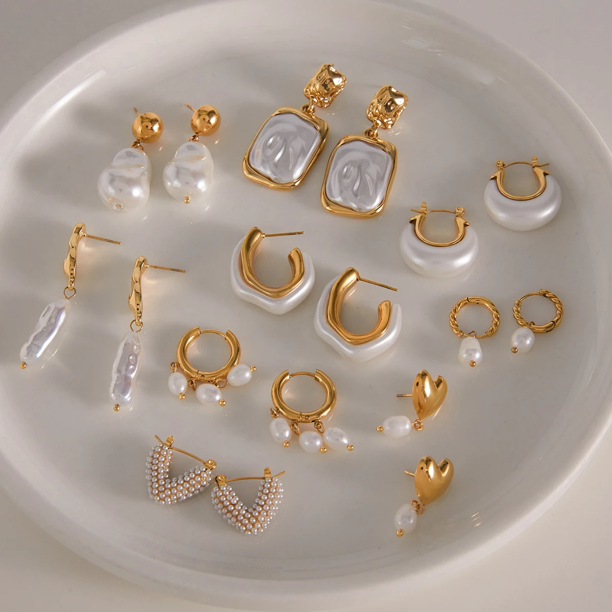 Vintage Stainless Steel Irregular Pearl Earrings