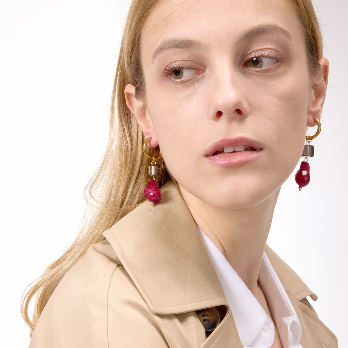 Vintage Stainless Steel Red Drop Earrings for Women
