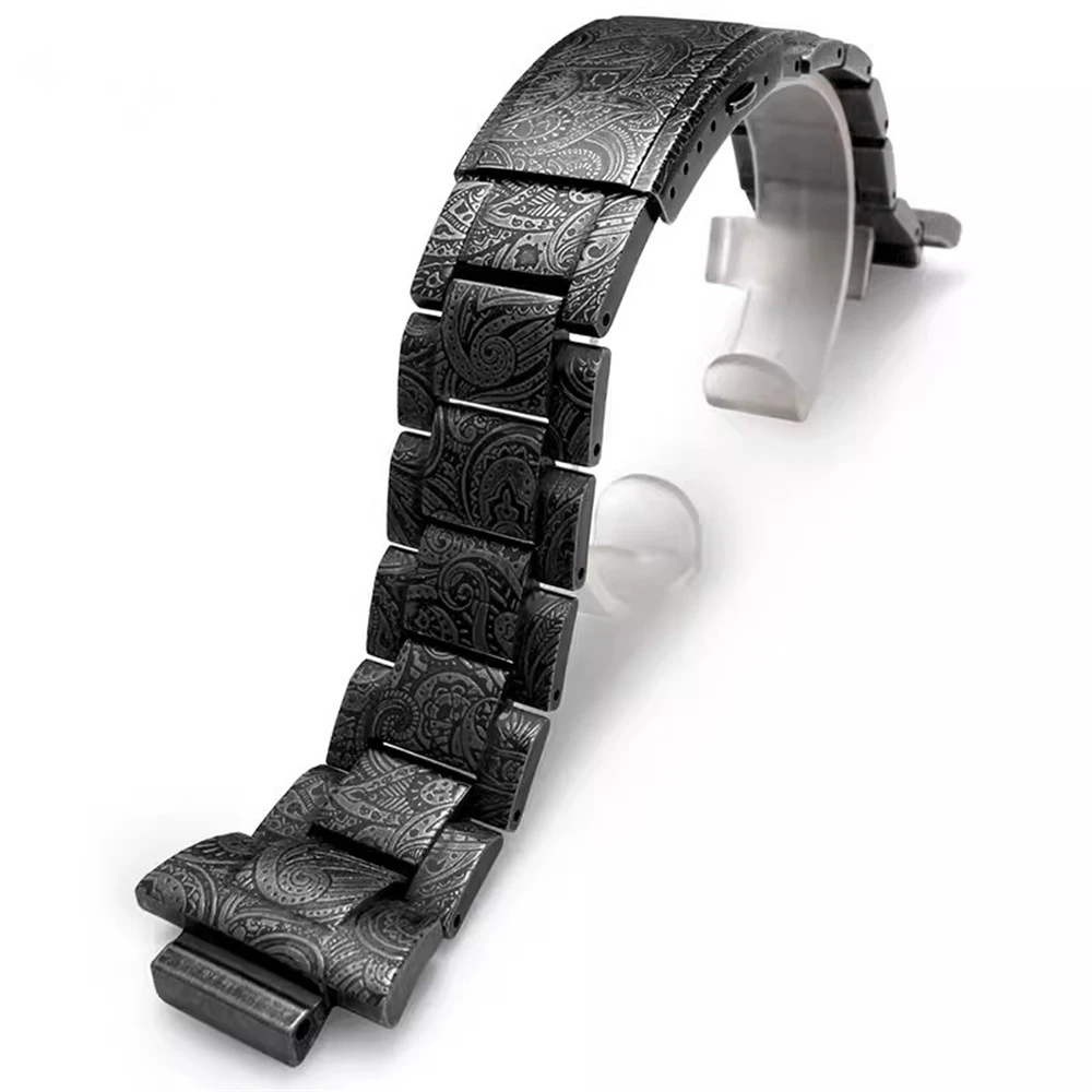 - Delicately carved paisley pattern on the stainless steel case and strap, offering an exotic and vintage appearance with complex, ornate details.