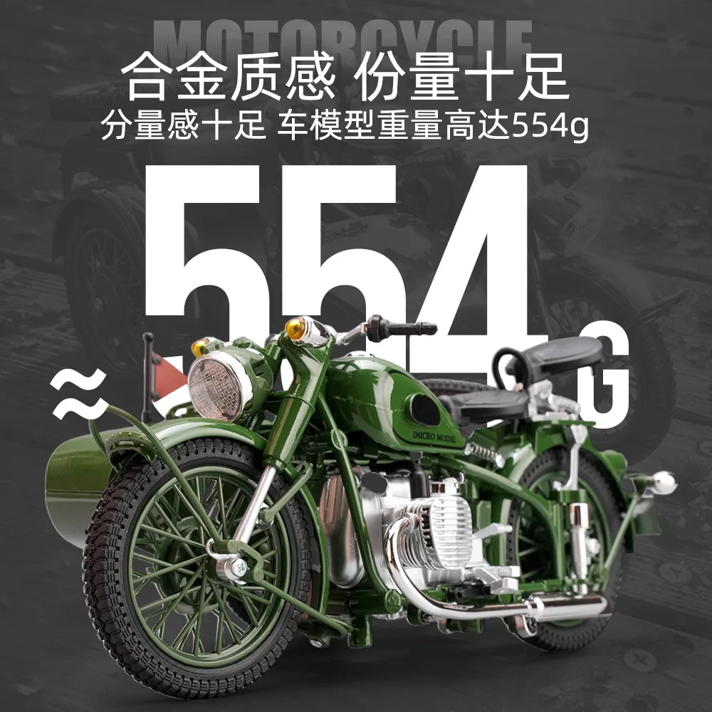Enhance your collection with this meticulously crafted vintage sidecar trike model. Its realistic design, interactive features, and classic aesthetic make it an ideal display piece or gift for adult enthusiasts. The combination of durable diecast materials, authentic retro styling, and functional sound and light capabilities delivers a perfect blend of nostalgic charm and modern realism. Whether displayed on a shelf or used as a decorative accessory, this model captures the essence of vintage motorcycles with remarkable detail, making it an exceptional addition to any collection of miniature vehicles.