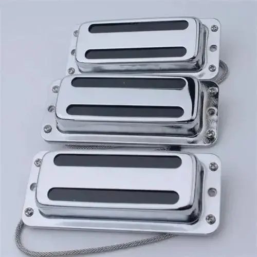 Step into the world of classic guitar sound with this set of Retro Ainico Guitar Pickups. Crafted with a sleek, vintage-inspired aesthetic, these pickups feature a glossy black rectangular metal cover accentuated by a shiny chrome border, delivering a polished and timeless look. Their compact, durable design combines high-quality metal and plastic materials, ensuring long-lasting performance. The Alnico 5 magnets used in each pickup provide warm, rich tones reminiscent of vintage recordings. With resistance values of 5.7KΩ (neck), 7.73KΩ (middle), and 8.65KΩ (bridge), these pickups are specially engineered to give your guitar the dynamic sound you crave. Whether you're recording or performing, these pickups will elevate your tone with sophistication and vintage charm.