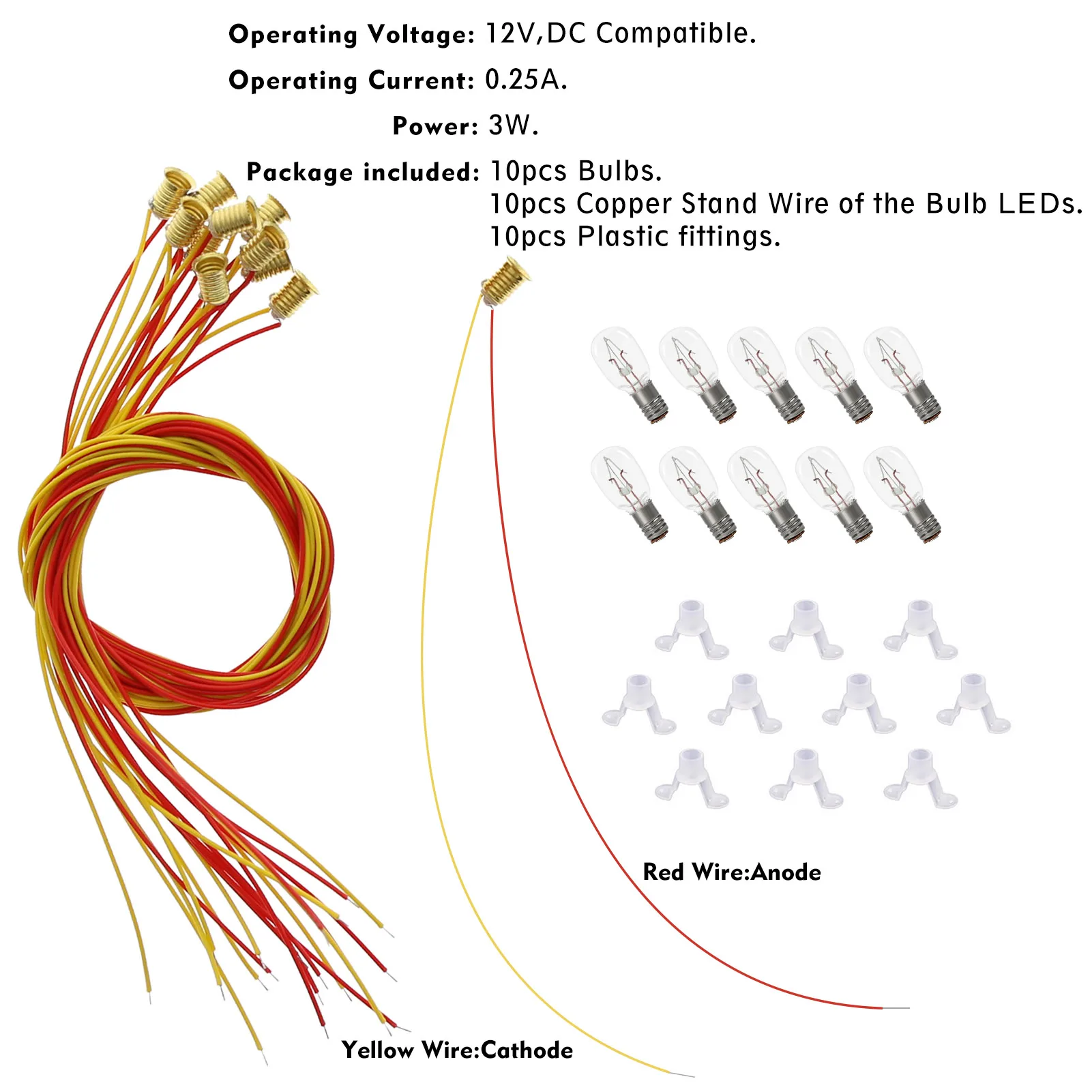 - Set includes ten 3W bulbs with a voltage range of 12V-14V DC, ideal for reliable miniature lighting in dollhouses and vintage models.