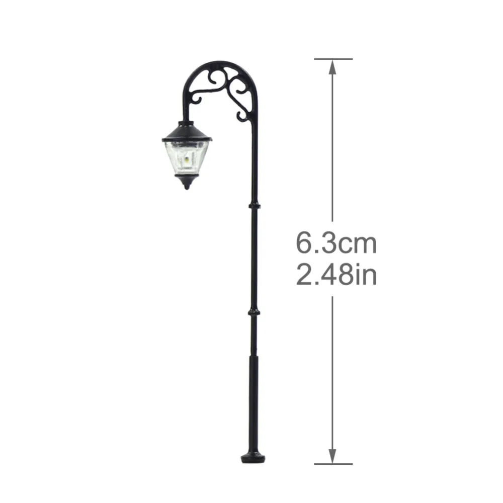 - Each lamp post is approximately 6.3 cm tall, scaled for HO models, perfect for detailed miniature scenes. The elegant height enhances realism and creates an authentic vintage appeal.