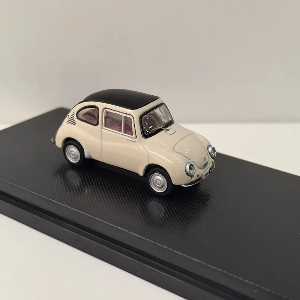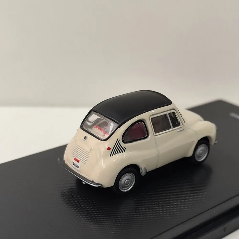 Experience the timeless charm of the this Subaru 360 K11 1958 die-cast model, meticulously crafted to bring vintage automotive elegance into your collection. Crafted from high-quality alloy, plastic, and rubber, this 1:64 scale replica captures the iconic rounded body shape, smooth curves, and intricate details of the original. Its creamy beige body with a contrasting black roof creates an eye-catching aesthetic that echoes classic design. Fine features like detailed headlights, grille, door handles, and transparent windows revealing a vibrant red interior make this model an authentic collectible. Whether displayed on a shelf or gifted to a fellow enthusiast, this piece exudes the nostalgic allure of vintage cars with precise craftsmanship details.