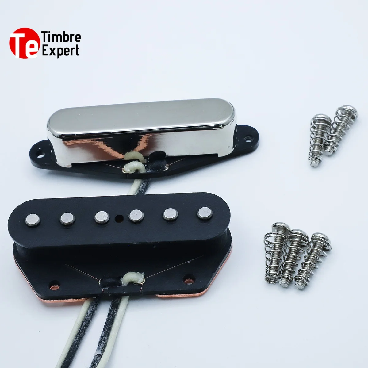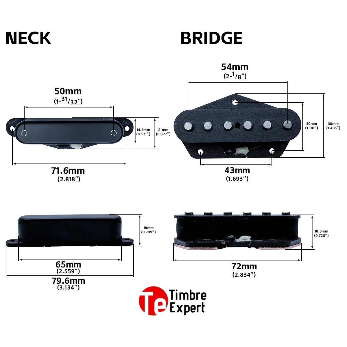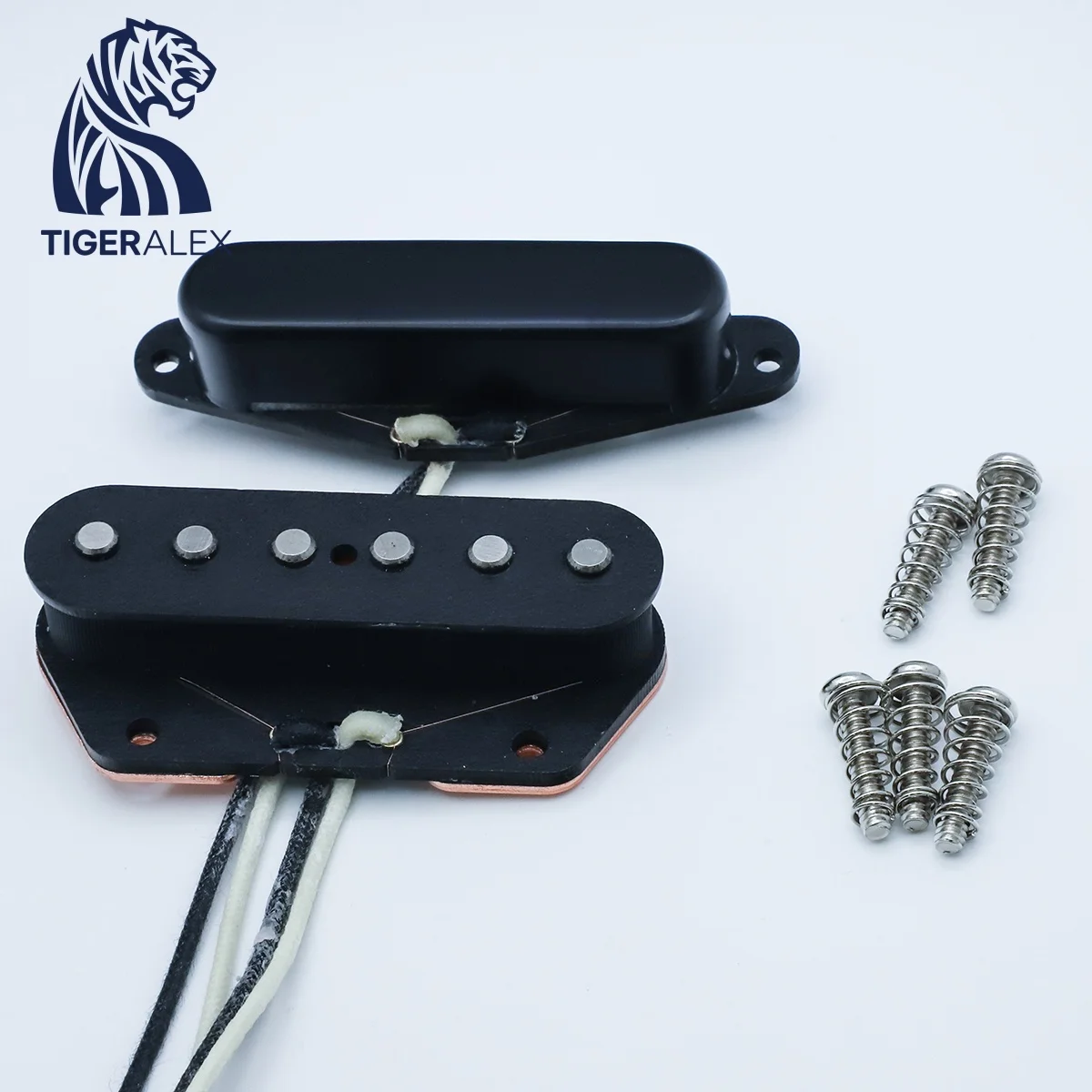 - Mounted on black base plates with visible screw holes for straightforward installation, compatible with all standard Telecaster models requiring vintage-style pickups.