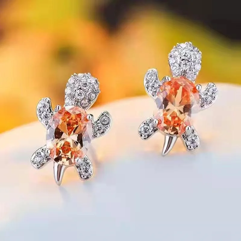 Discover the charm of these vintage-inspired turtle stud earrings, crafted with delicate detail and elegant sparkle. Each earring features a shiny silver-tone zinc alloy turtle, with a deep, dark green oval-shaped gemstone mimicking the shell. Small, clear crystals adorn the turtle’s head, limbs, and contours, adding a touch of brilliance and textured appeal. Lightweight at just 1 gram per piece and measuring approximately 8mm in diameter, these earrings are perfect for everyday casual wear or special occasions. Their versatile design blends playful animal motifs with vintage elegance, making them a timeless addition to your jewelry collection. Securely attached with push-back findings, they comfortably stay in place while showcasing detailed craftsmanship and sparkling accents.