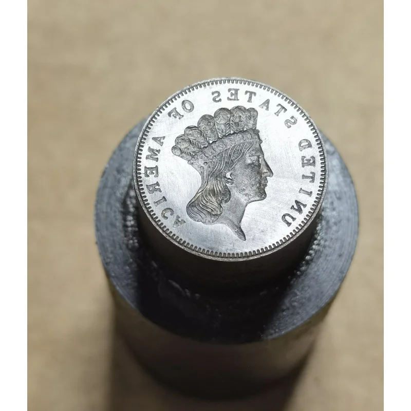 Own a tangible piece of American history with this high-quality, antique-style coin die. Perfect for collectors, hobbyists, or artisans passionate about recreating historic coins, this durable and finely detailed die ensures authenticity and craftsmanship. Imagine the satisfaction of producing your own 3- coins, each with intricate engravings and classic design features that stand the test of time. Don't miss the opportunity to add this exceptional piece to your collection today and bring 19th-century artistry to life through your own hands.