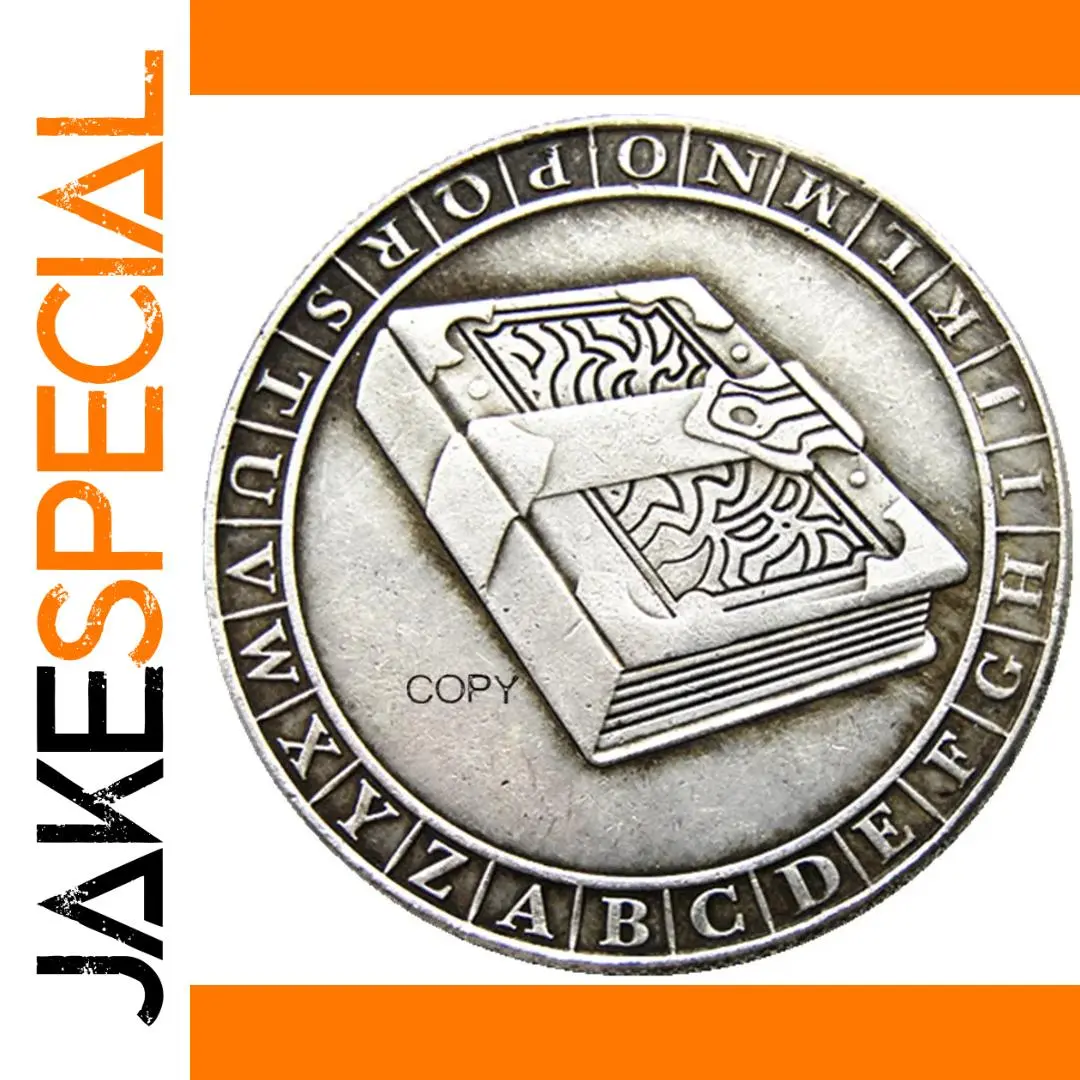 Imagine owning a piece of history with this beautifully crafted vintage US coin. Featuring a detailed, raised depiction of an open book with ornate pages and a decorative cover, this coin captures the nostalgic charm of the late 19th century. Its silver-plated finish gives it a shiny, reflective surface enhanced by a slightly antiqued look, emphasizing its retro aesthetic. The circular border with uppercase letters from A to Z, separated by small dots, adds a classic, patriotic touch. Perfect for collectors and enthusiasts, this coin embodies American heritage and old-world craftsmanship. Its durable metal composition and smooth, rounded edges make it both an elegant display piece and a meaningful keepsake of patriotic pride.